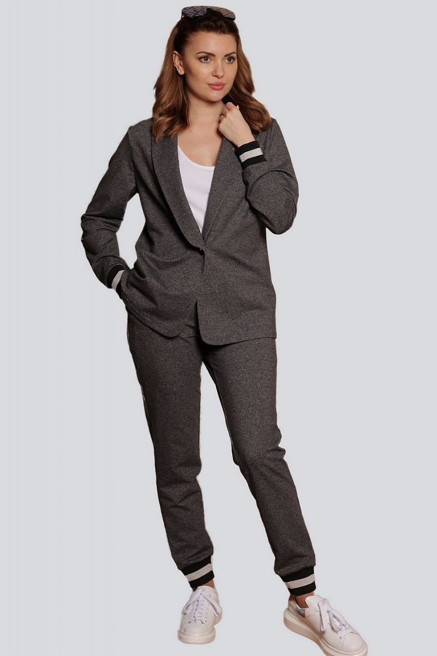 Забудьте об элегантных и отполированных луках, ведь на замену такому идеальному стилю пришло небрежное сочетание практичных, и на первый взгляд, несовместимых вещей из спортивного и классического стилей. Этот универсальный трикотажный костюм-идеальный вариант в качестве стильной и комфортной одежды на каждый день. Состав трикотажа: 75% хлопок, 20% полиэстер, 5% спандекс.