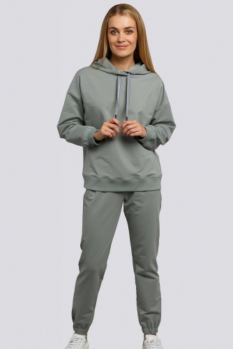 Тренд на расслабленные и комфортные вещи, которые не сковывают движения и дарят ощущение уюта, — один из основных в новом сезоне весна-лето 2021. Поэтому трикотажный костюм, состоящий из толстовки и брюк, наиболее соответствует данным тенденциям. Толстовка «оверсайз» с капюшоном, низ изделия и низ рукава обработаны поясом и манжетами. В капюшон вставлен декоративный шнур. Брюки свободные, пояс и низ брюк на резинке. Состав трикотажа: 75% хлопок, 20% полиэстер, 5% спандекс.