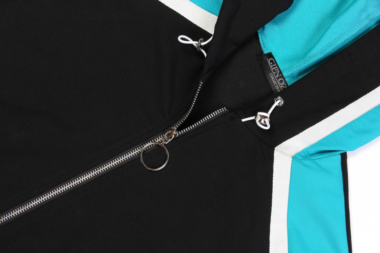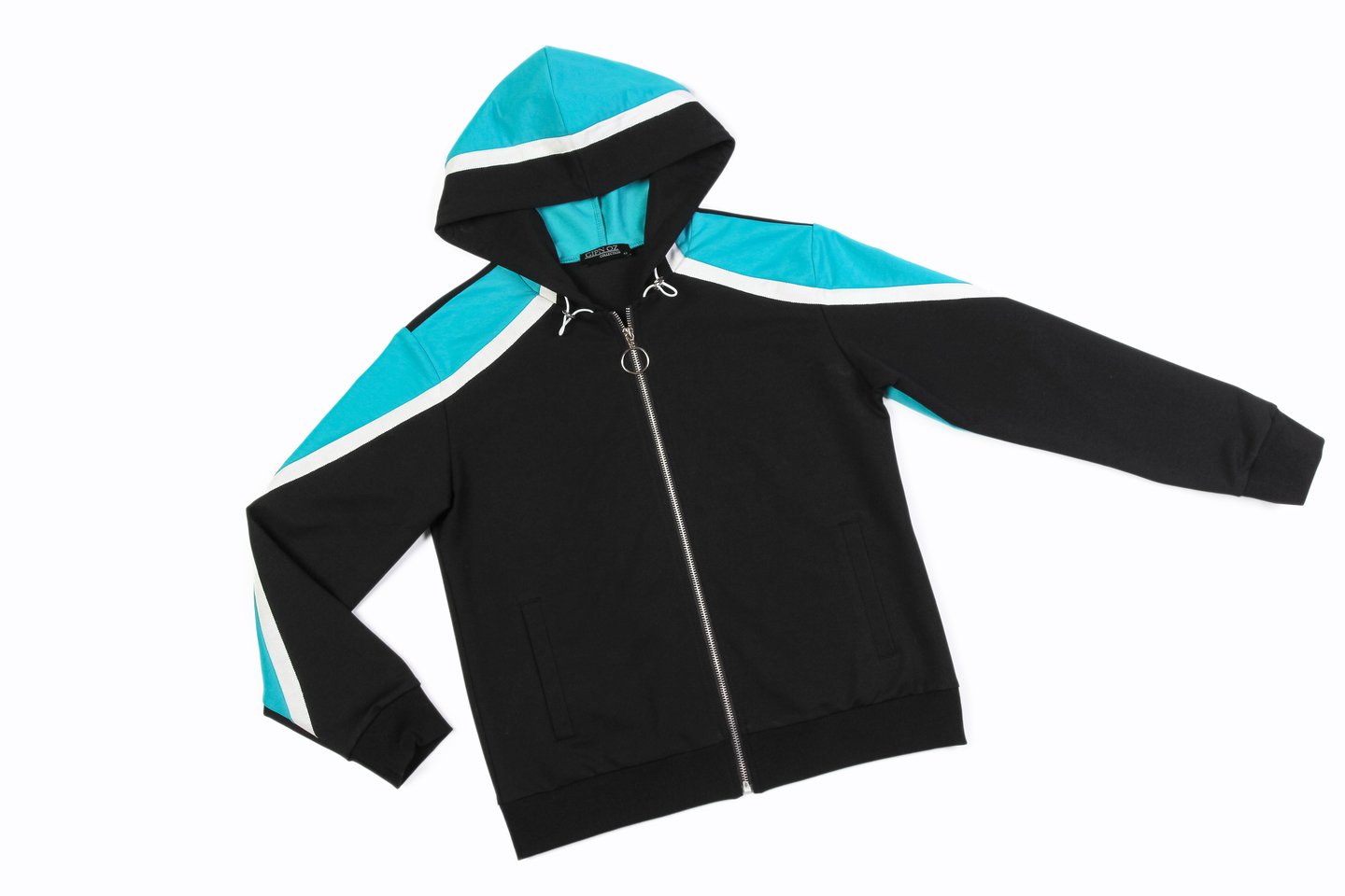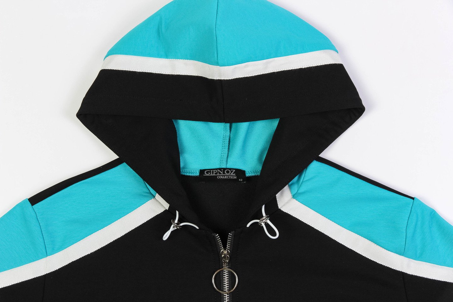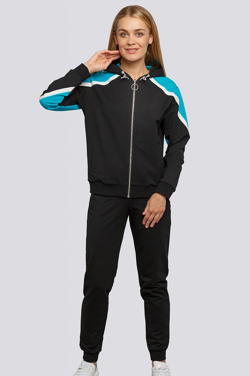 Заниматься спортом, гулять, общаться с друзьями — эти действия должны присутствовать в жизни каждой активной леди, поэтому модный трикотажный костюм в спортивном направлении обязан присутствовать в вашем гардеробе безоговорочно. Костюм состоит из олимпийки и брюк. Яркость костюму придает оригинальное сочетание разных цветов и контрастной тесьмы. Олимпийка с капюшоном, центральная застежка на молнию. Спереди карманы с листочкой. Низ олимпийки и низ рукава обработаны поясом и манжетами. Брюки свободные, пояс брюк на резинке, низ обработан манжетами. Состав трикотажа: 75% хлопок, 20% полиэстер, 5% спандекс.
