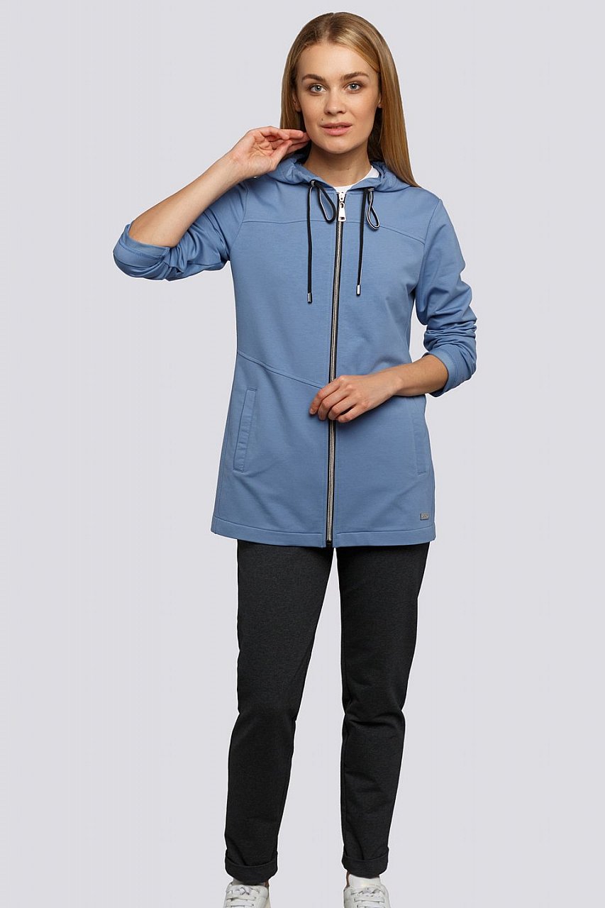 Трикотажный костюм всегда считался лидером комфортной одежды. Удлиненная олимпийка на молнии с капюшоном, длина до линии бедра, умеренного объема – о чем еще можно мечтать? Застежка на молнию. Свободные брючки темно-серого цвета с отгибающейся манжетой, объем по талии регулируется шнуром. Состав трикотажа: 75% хлопок, 20% полиэстер, 5% спандекс.