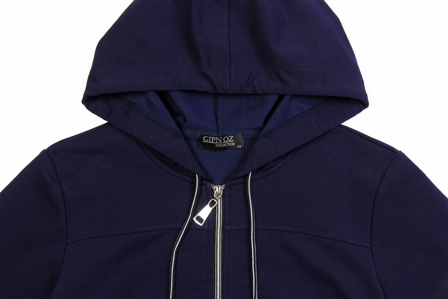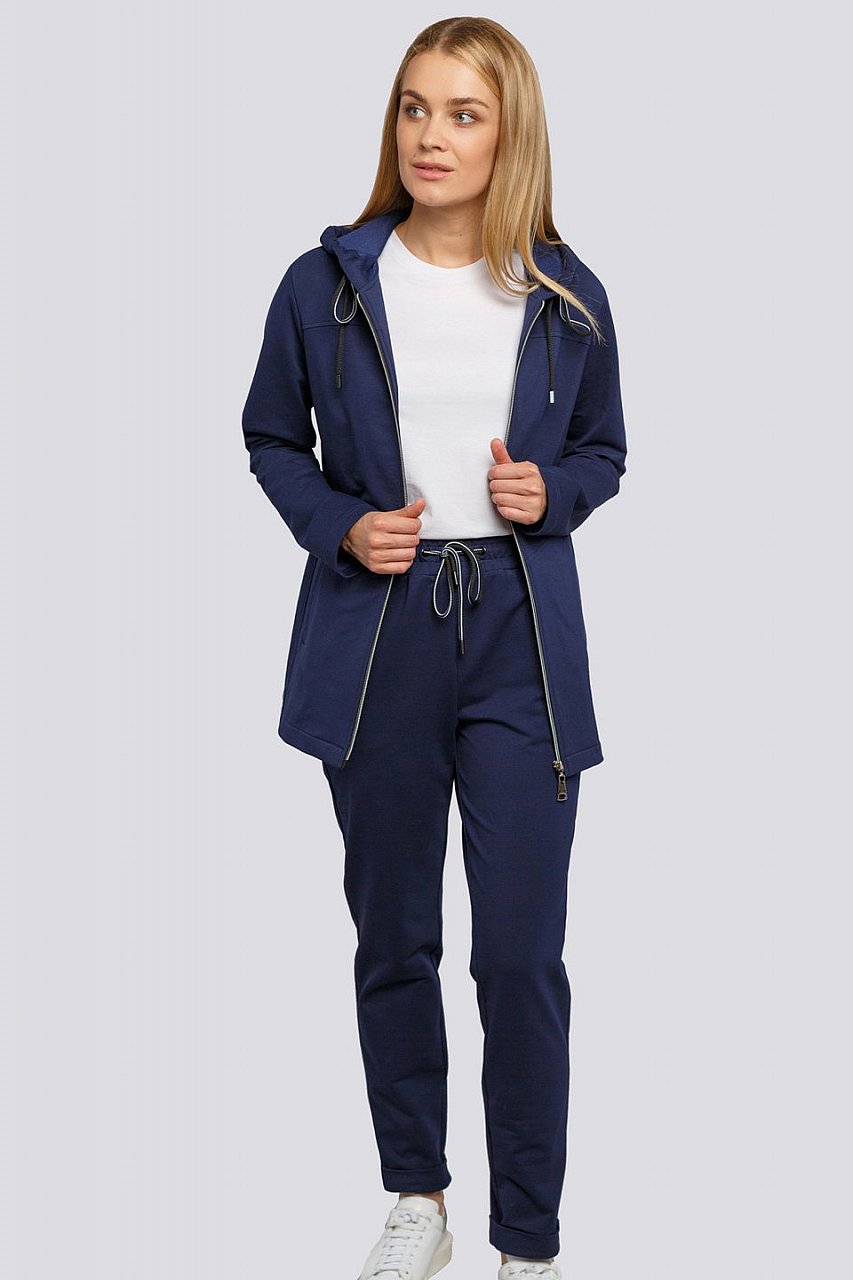 Трикотажный костюм всегда считался лидером комфортной одежды. Удлиненная олимпийка на молнии с капюшоном, длина до линии бедра, умеренного объема – о чем еще можно мечтать? Застежка на молнию, закрытую планкой. Свободные брючки с отгибающейся манжетой, объем по талии регулируется шнуром. Состав трикотажа: 75% хлопок, 20% полиэстер, 5% спандекс.
