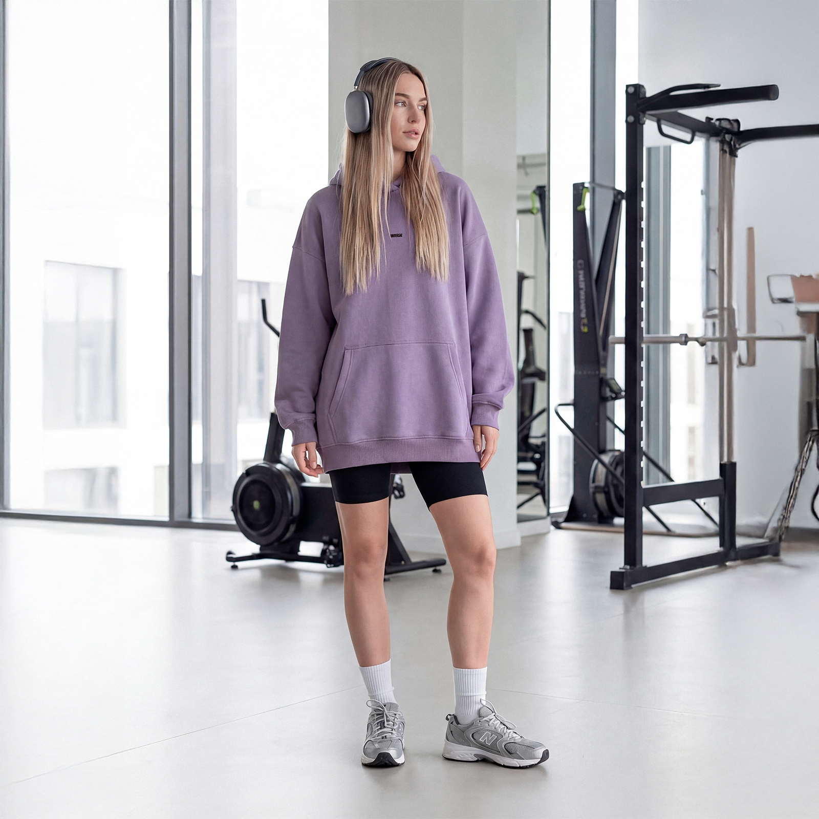 т.лавандовый Женская куртка с капюшоном, карманом "кенгуру" (принт "Universal").Материал: