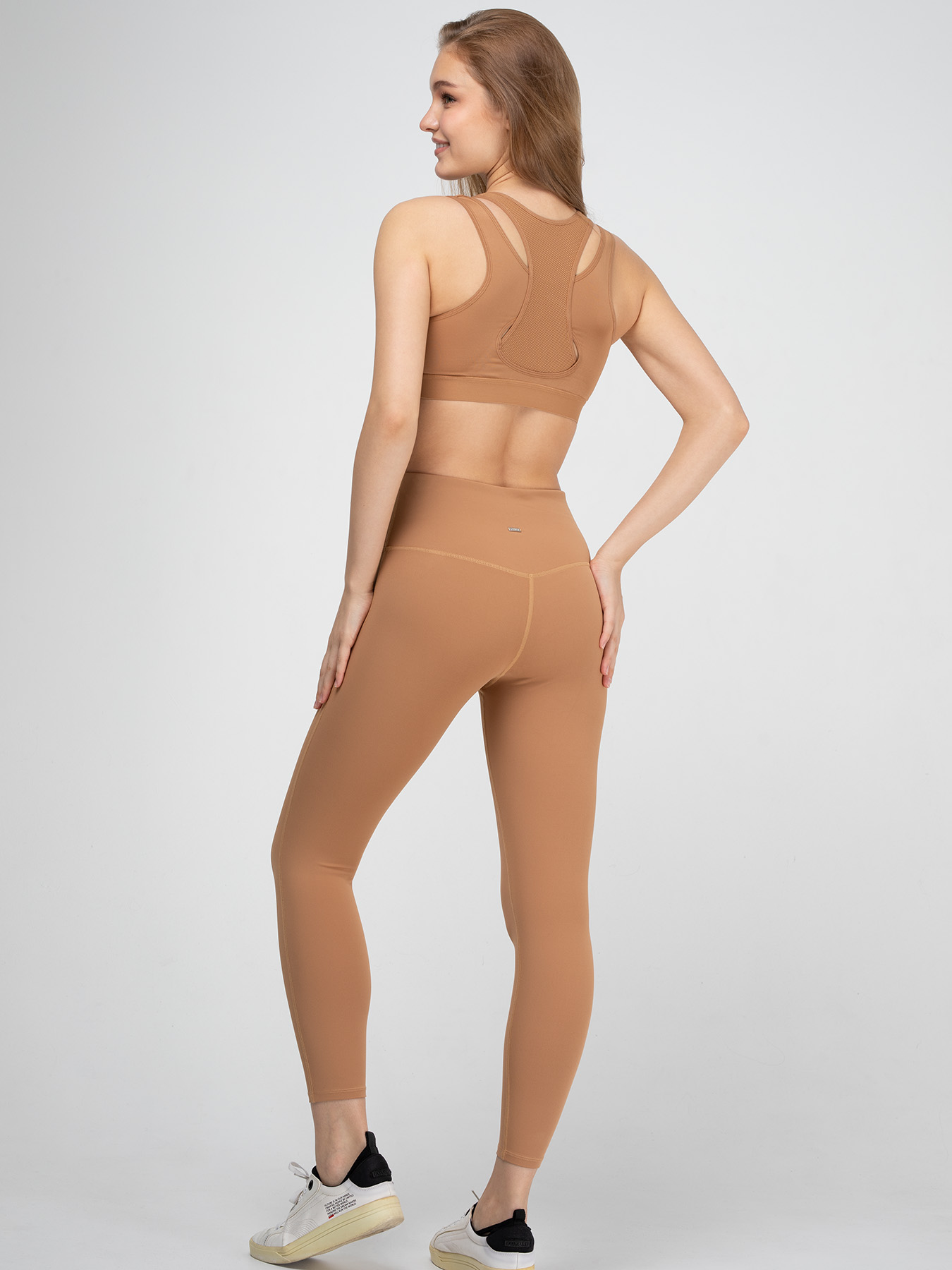 Женские спортивные легинсы из мягкой, приятной к телу микрофибры. Плоские швы, ластовица. Двойной широкий пояс поддерживает живот и бока и формирует привлекательный силуэт. Крой модели минималистичен, без лишних деталей, поэтому легинсы можно носить не только на тренировках, но и в повседневных образах. Сзади серебряный шильдик с логотипом. Модный цвет карамель подарит умиротворение и элегантность. Рекомендуем с топом BF-10 в таком же оттенке.