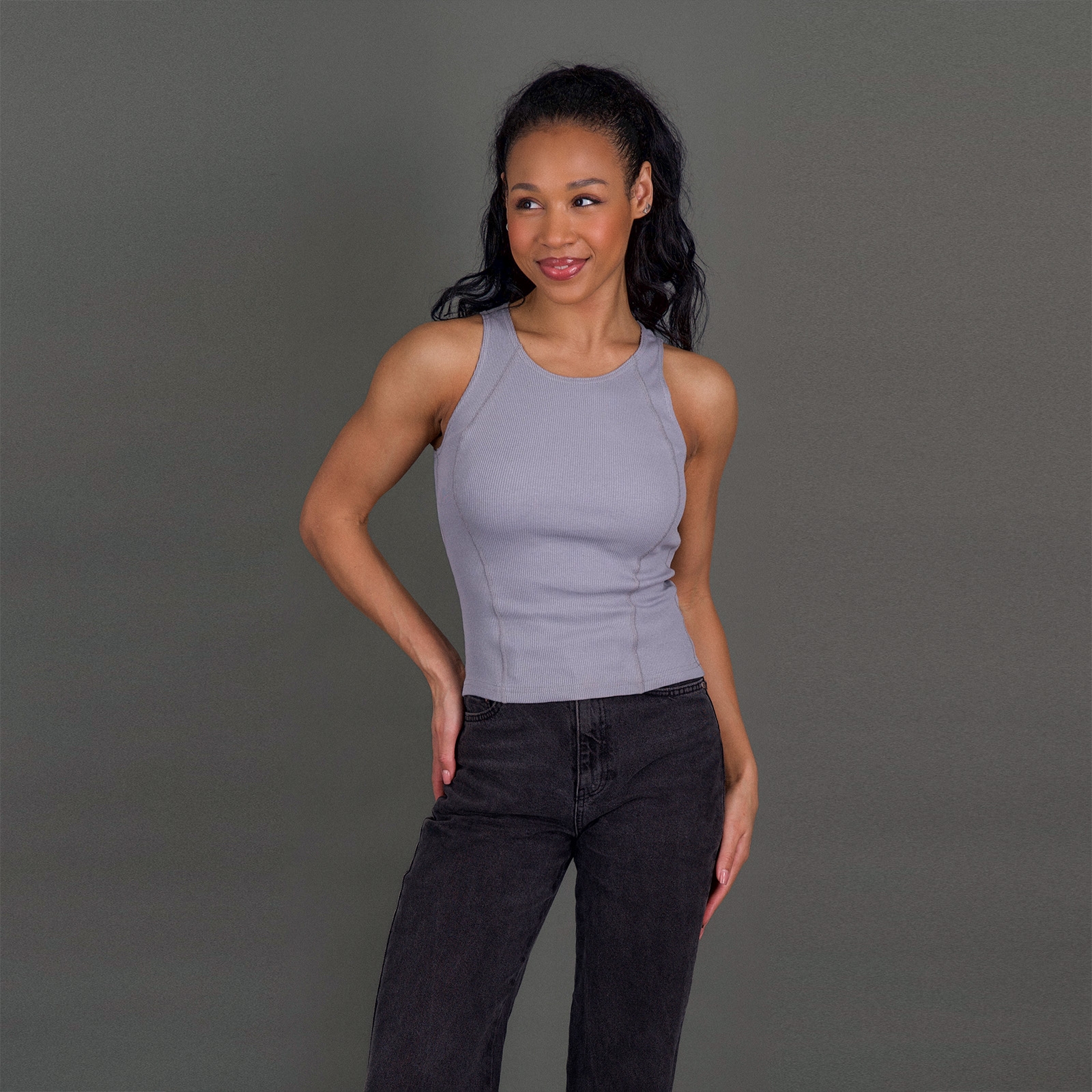 пепельный Женская укороченная майка из кашкорсе с рельефными линиями по переду.Материал:
