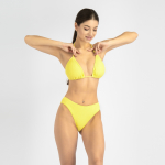 Malaga (press) -  это легкий, воздушный и слегка пружинистый материал с рельефной поверхностью. Обладает повышенной упругостью. Полотно устойчиво к воздействию солнечных лучей, не мнется и комфортно в эксплуатации. ВНИМАНИЕ: Изделия в цвете розовый и коралл неон не замачивать и стирать отдельно от других вещей при температуре 30 градусов. (возможен окрас).Состав: 80% Polyamide, 20% Elastane лимон