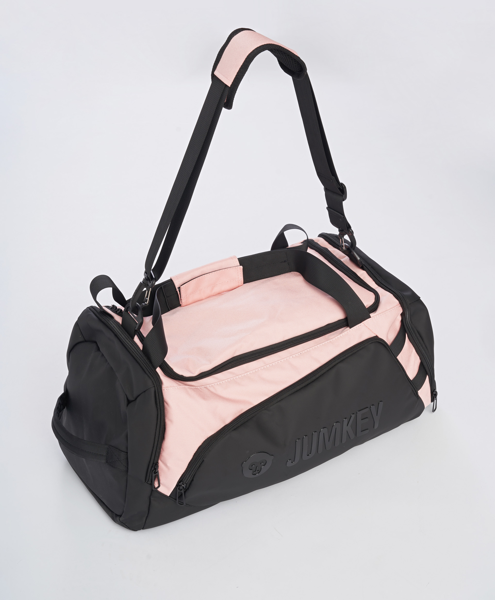 Спортивная розовая сумка с черными вставками Jumkey для женщины - незаменимый помощник для походов в спортзал и путешествий. Модель выполнена с четырьмя отделами на молнии, в каждом из которых есть еще несколько отсеков. Сумка разработана для хранения вещей и имеет специальный непромокаемый карман для влажной одежды, например, после бассейна, а также есть карман с вентиляцией. В общей сложности изделие выполнено с 14 отсеками и карманами различных размеров и назначений. Все для комфортного и эргономичного размещения необходимых вещей. В комплект сумки входят два более коротких ремня для переноски и длинный регулируемый плечевой ремень. Этой сумке не страшна непогода, так как изделие создано из плотной плащевой ткани. Сумка хорошо держит форму и имеет плотные пластиковые ножки на дне. Размер: 53см х 25см х 28см.
