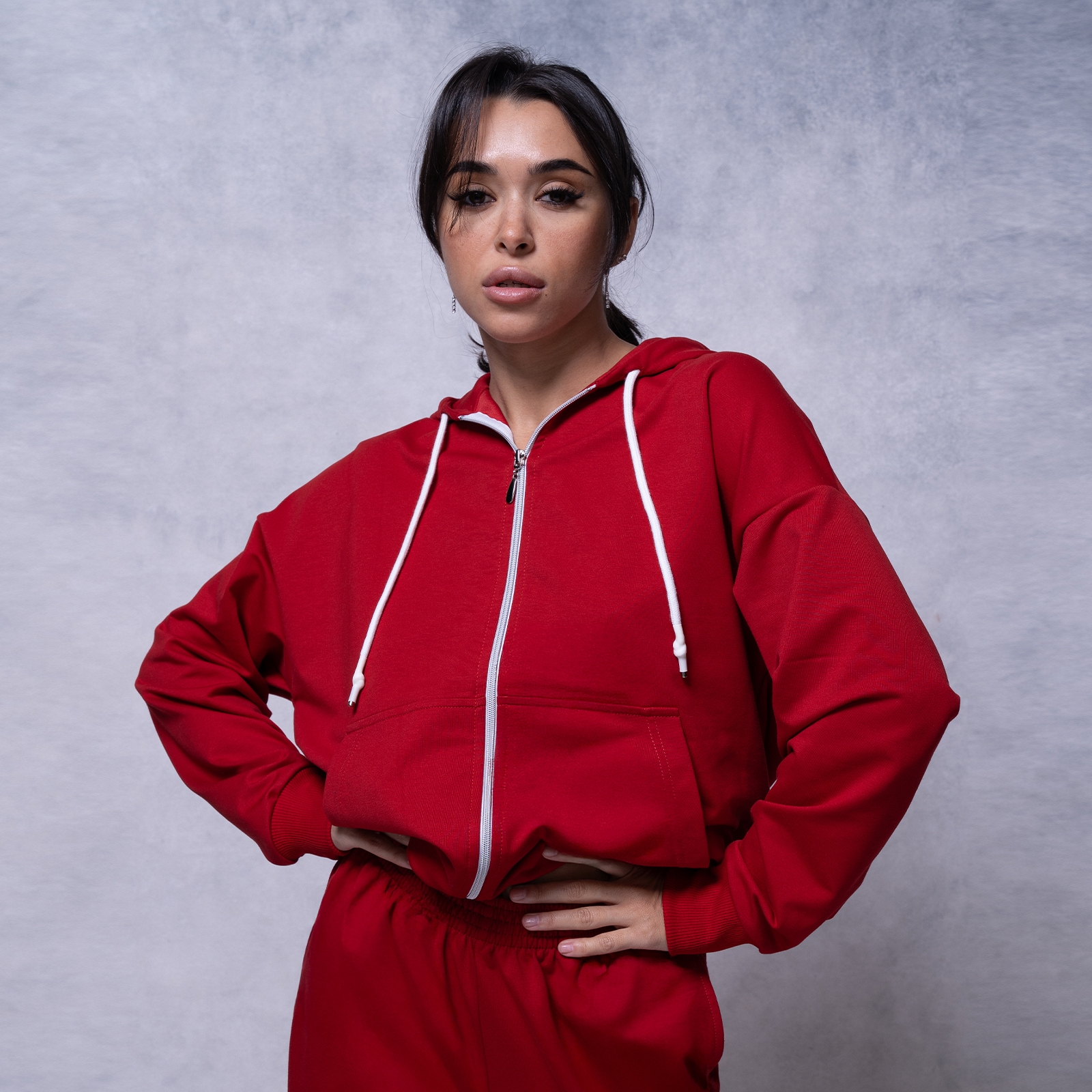 красный Женская толстовка на молнии, с капюшоном и карманами.Материал:
