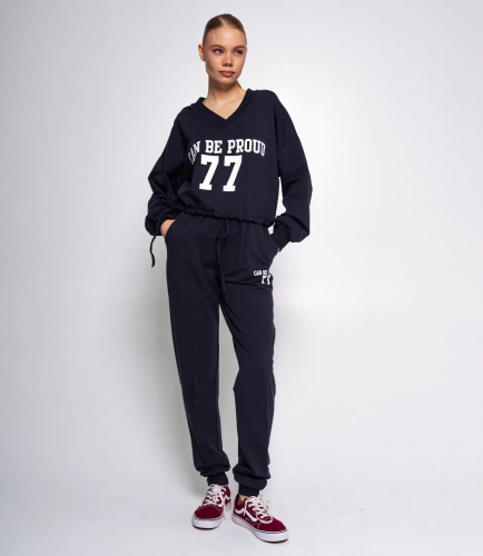 Хлопковый спортивный костюм отличное решение для занятия спортом или просто прогулки. Укороченная кофта с капюшоном и брюки карго отлично дополняют друг друга и дарят комфорт. Хлопок