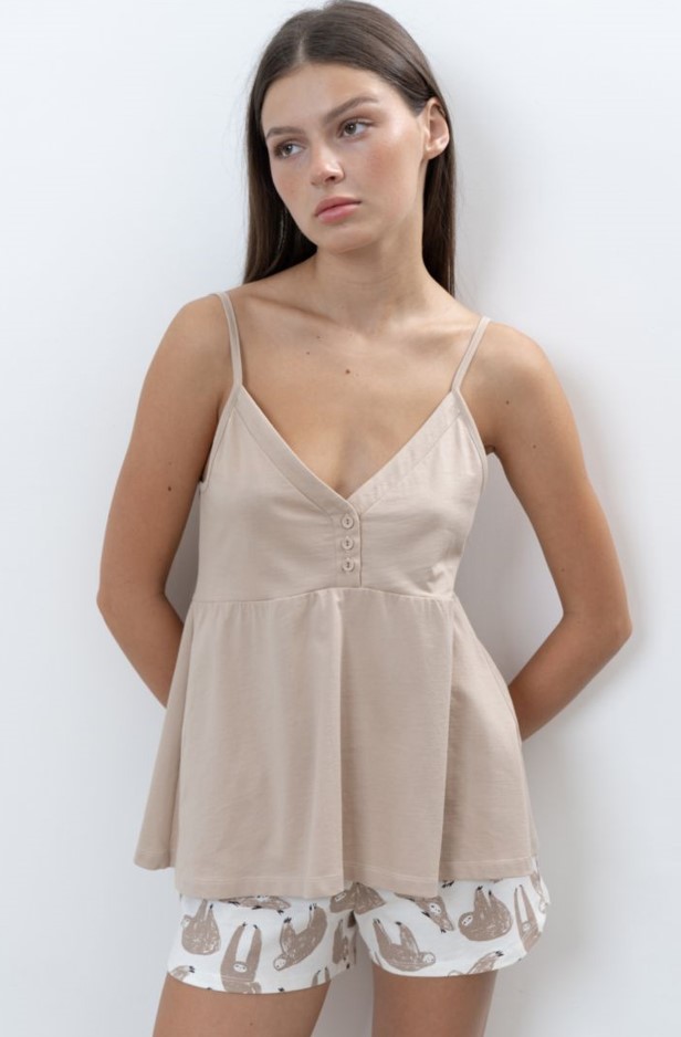 кокетливый дизайн топа сочетается с брюками и шортами из