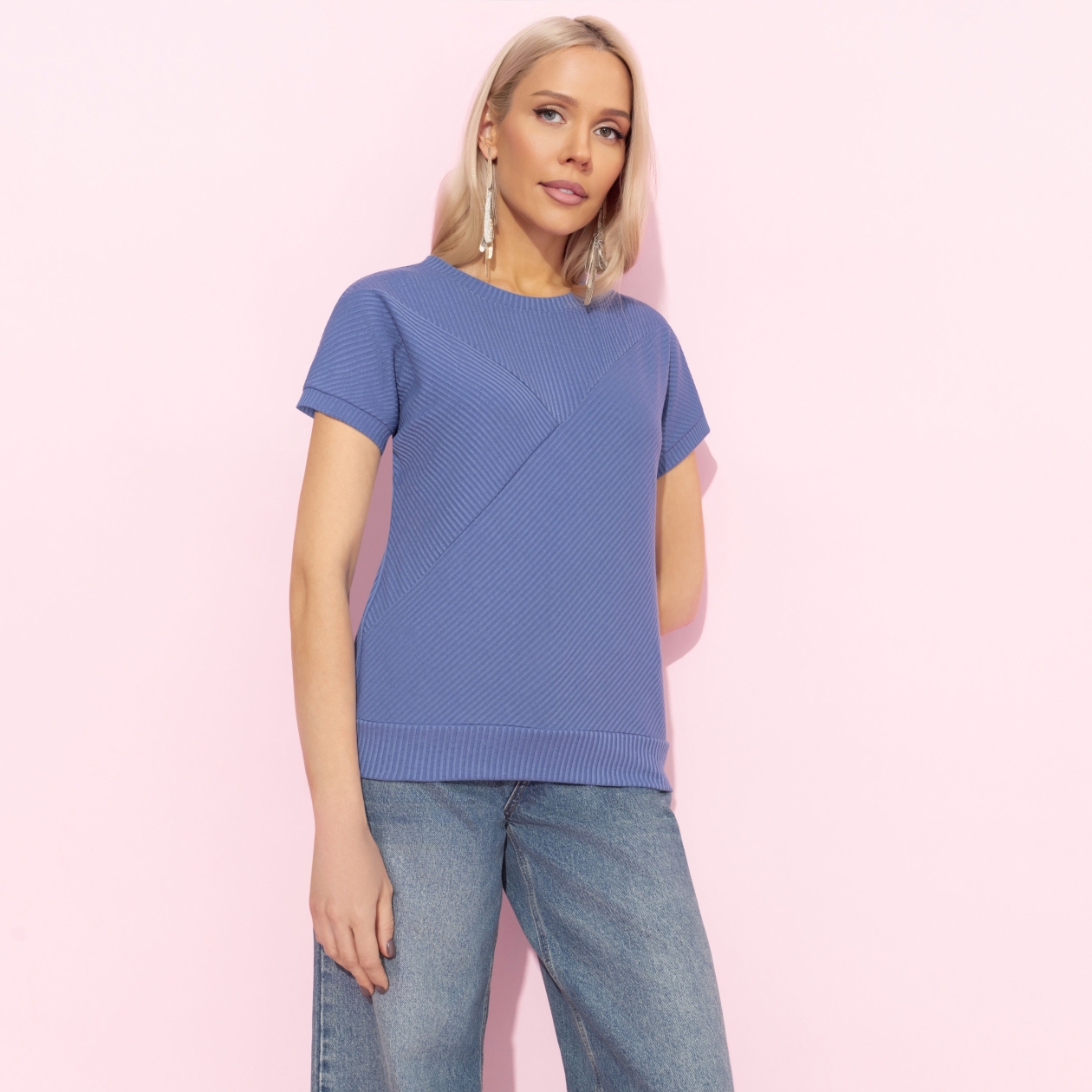 Вибрации утра беспощадны. Врожденный перфекционизм каждый день поднимает тебя ни свет ни заря и вынуждает наводить красоту. CHARUTTI экономит несколько драгоценных минут – футболка в цвете голубики всегда выглядит роскошно. Футболка свободной посадки прямого силуэта. Материал изделия фактурный. Линия плеча спущена. Футболка хорошо смотрится в заправленном виде и навыпуск.