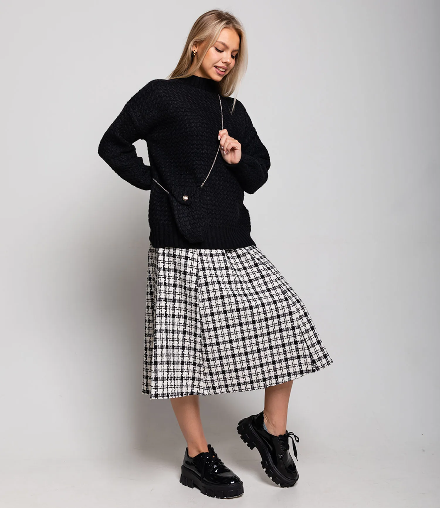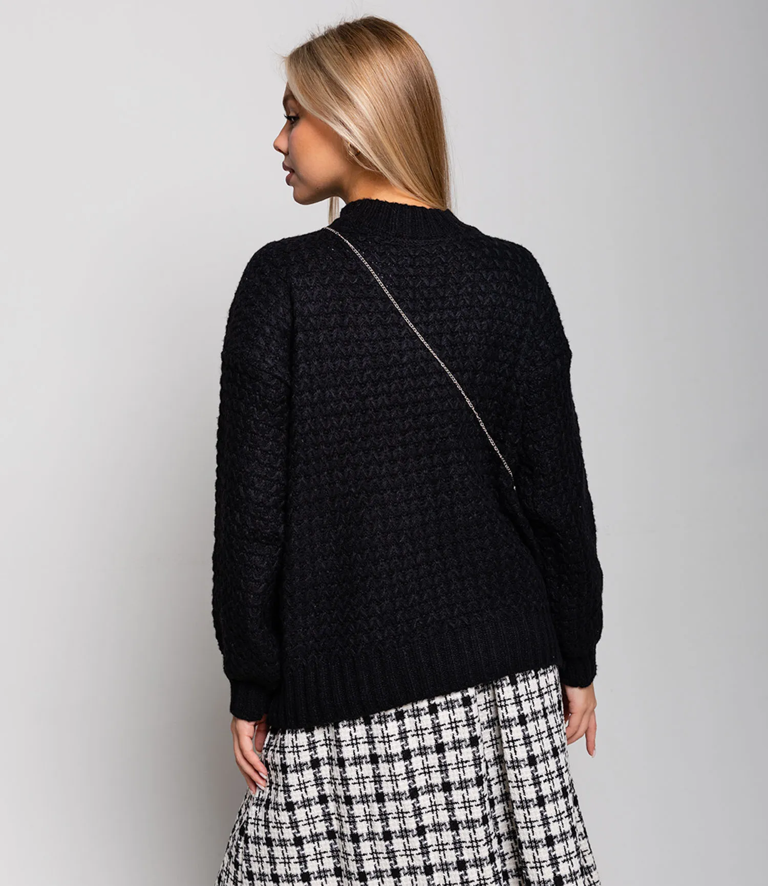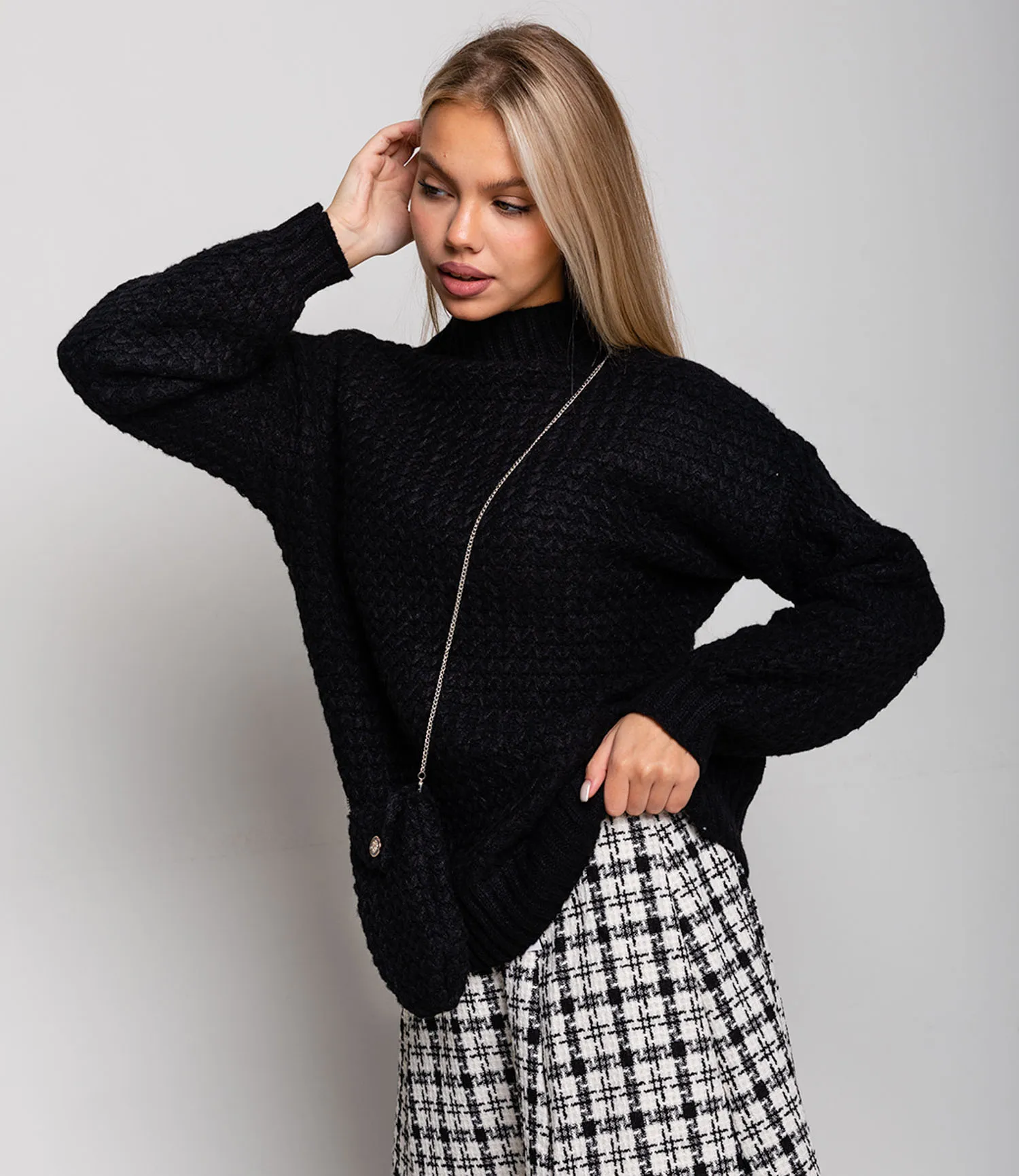 Свитер - это базовая вещь в гардеробе каждого человека. Данная модель сделана из акрила и хлопка, что позволит сохранять тепло и чувствовать себя комфортно. Классический дизайн не оставит никого равнодушным и будет притягивать взгляды. А стильная сумочка в цвет свитера поможет базовым вещам всегда находится рядом с собой.