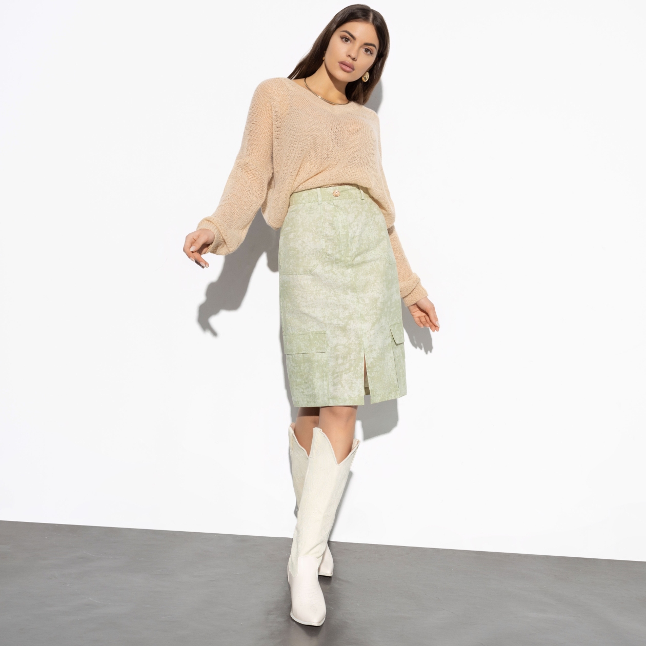 Приготовьтесь к чувствам свободы и стильной уверенности этой эпохи. «Юбка в стиле хаки» от «Модный знак» — это не просто элемент одежды, а обязательный элемент вашего гардероба, способный возвысить любой образ. Стиль карго на пике популярности — он вносит в дизайн живую динамику. Практичность и мода сплетаются в каждом изгибе, а накладные карманы добавляют дух приключений. Удобная длина до колена позволяет использовать эту юбку как в деловых встречах, так и в спонтанных городских прогулках, что выделяет её как идеальный вариант для приобретения оптом.