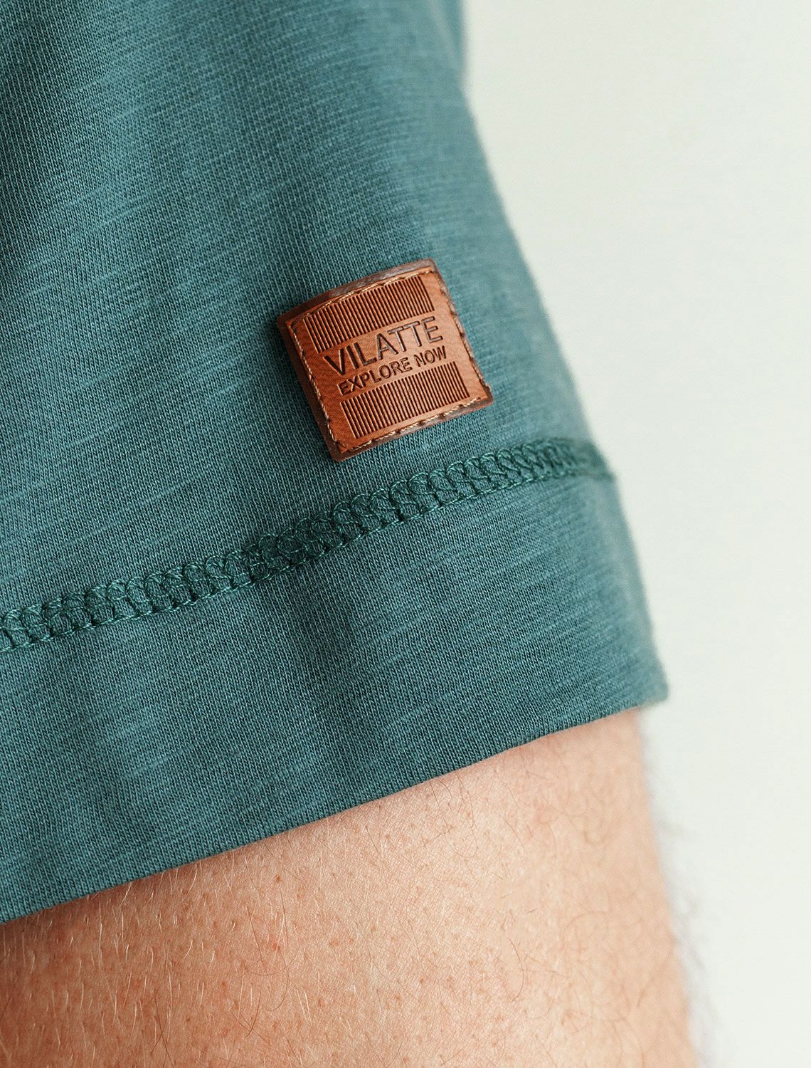 Футболка выполнена из фактурного полотна из 100% хлопка. Базовая однотонная модель, без труда впишется в любой гардероб. Ткань имеет характерный рисунок черточки за счет сочетания разных волокон хлопка 140-150 г. Хорошо держит форму и поддерживает комфортный микроклимат в течении дня. На рукаве нашивка из эко-кожи с логотипом бренда.
