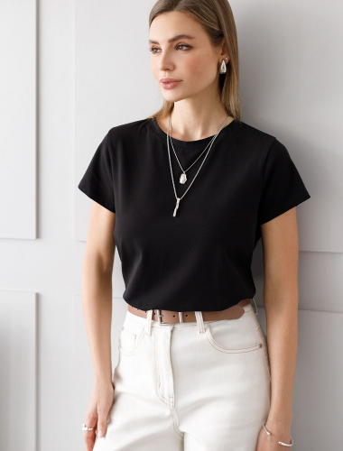 Ст.цена 1090р Футболка из облегченного хлопкового полотна с эластаном D49.021 черный