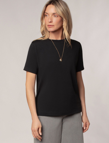 Базовая однотонная футболка из премиального хлопка. Горловина выполнена из рибаны в тон изделия, Добавление эластана в состав изделия способствует формоустойчивости. Самое высокое качество хлопковых волокон обеспечивает комфорт в любое время года. Идеально держит форму и сохраняет внешний вид в течение долговременного использования. Универсальная базовая вещь для ваших стилистических решений. Изделие дополнено металлическим логотипом бренда на рукаве.