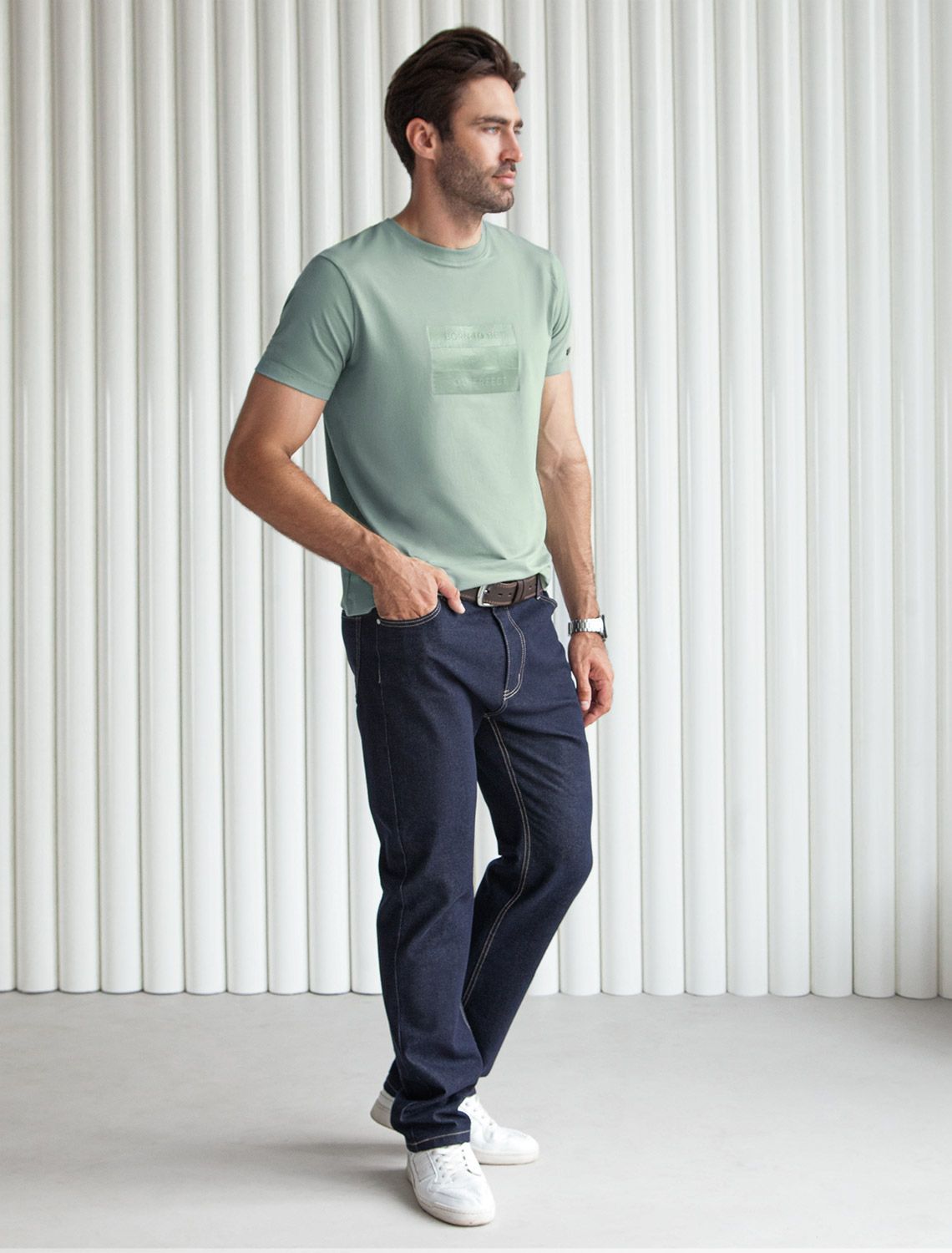 Ст.цена 1190р Футболка из премиального хлопка с авторским принтом U49.026 св.оливка_perfect