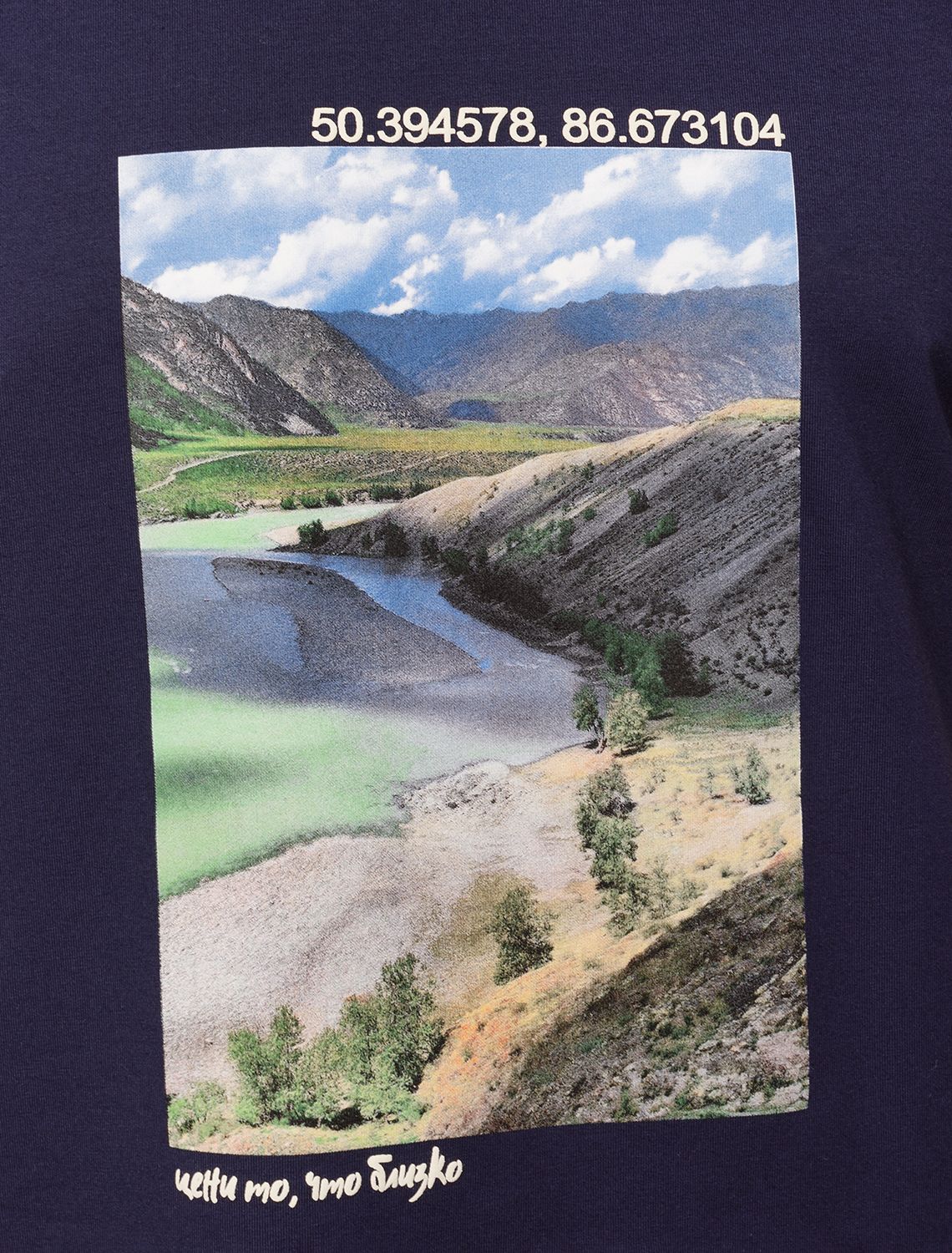 Ст.цена 1190р Футболка из премиального хлопка с авторским принтом U49.026 темно-синий_алтай
