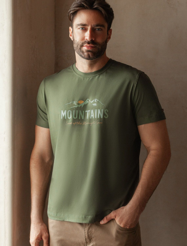 Ст.цена 1190р Футболка из премиального хлопка с авторским принтом U49.045 т.серый меланж_adventure