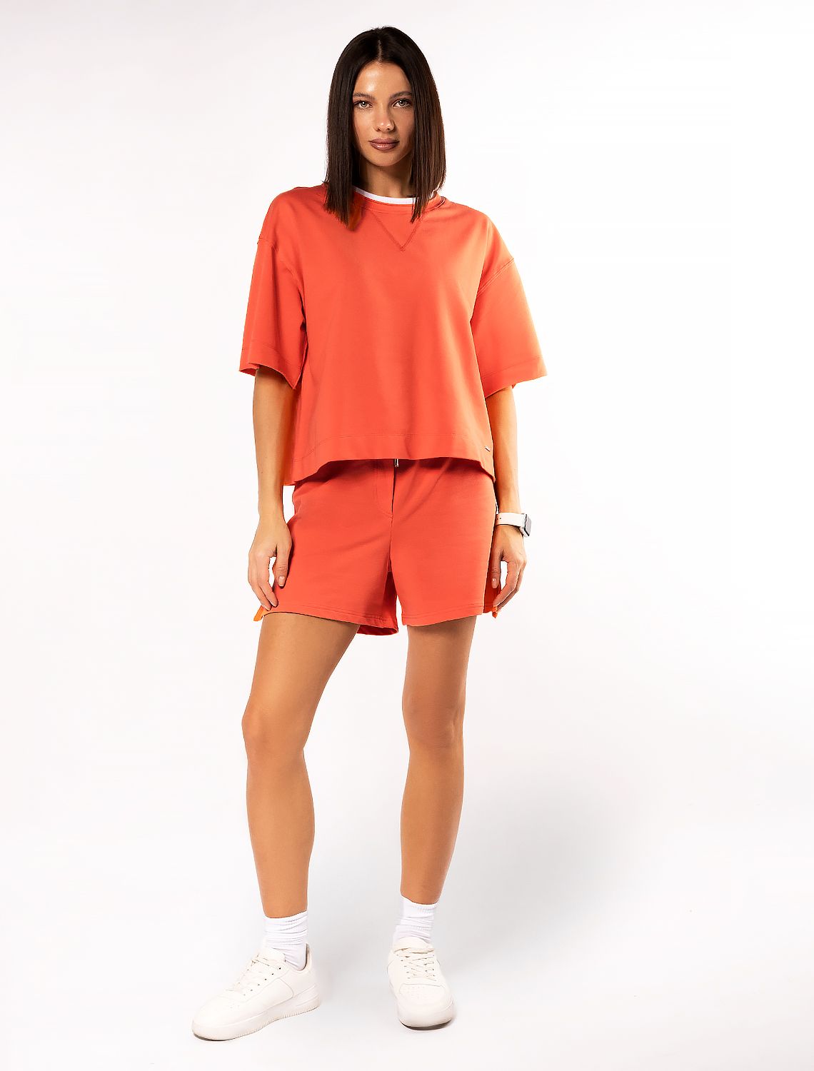 Ст.цена 1190р Шорты из тонкого футера с эластаном D48.002 оранжево-коралловый