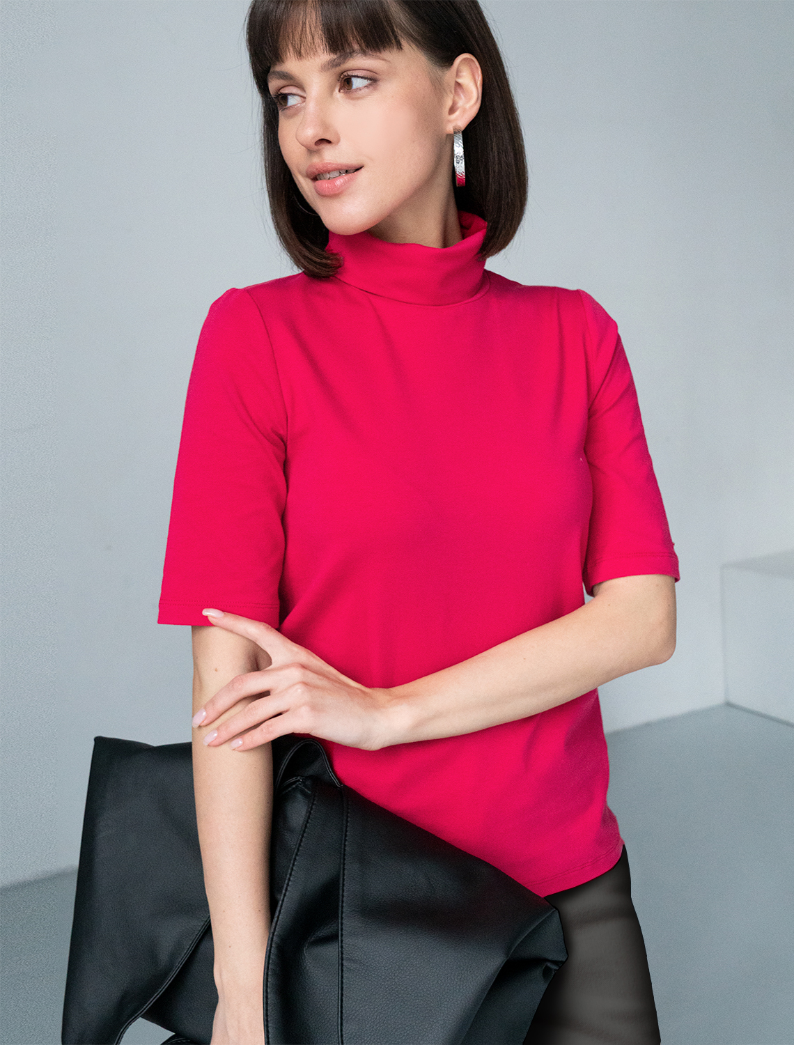Ст.цена 1190р Водолазка из премиального хлопка с эластаном D49.955 вива_маджента