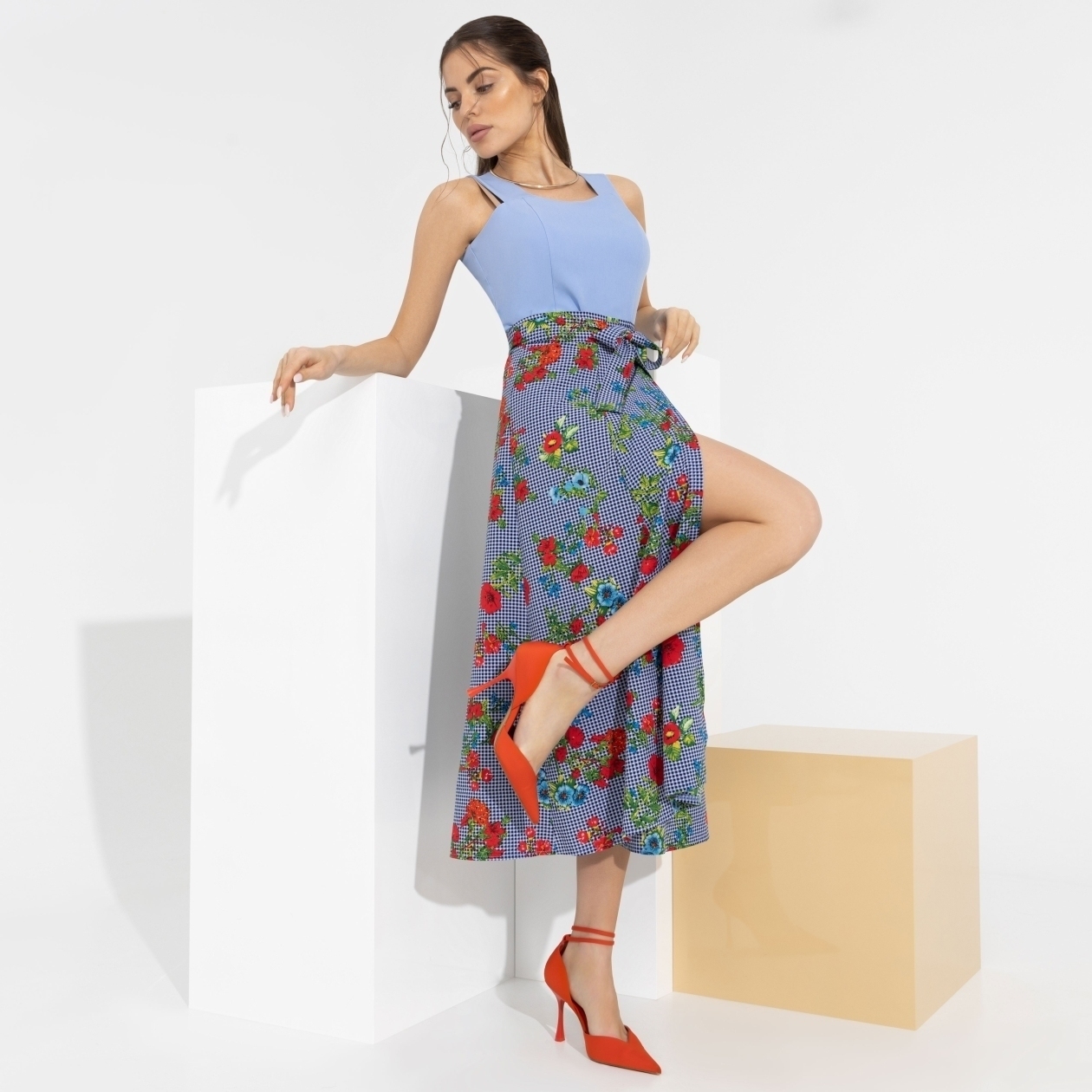 Юбка для модных бунтарок! Сочетать несочетаемое – это высший пилотаж стиля. Клетка и цветы – смело и дерзко, чтобы всем сразу стало ясно, кто тут королева.