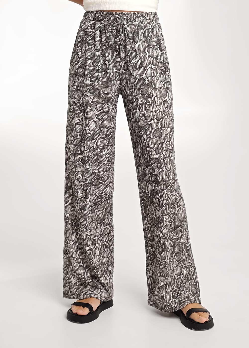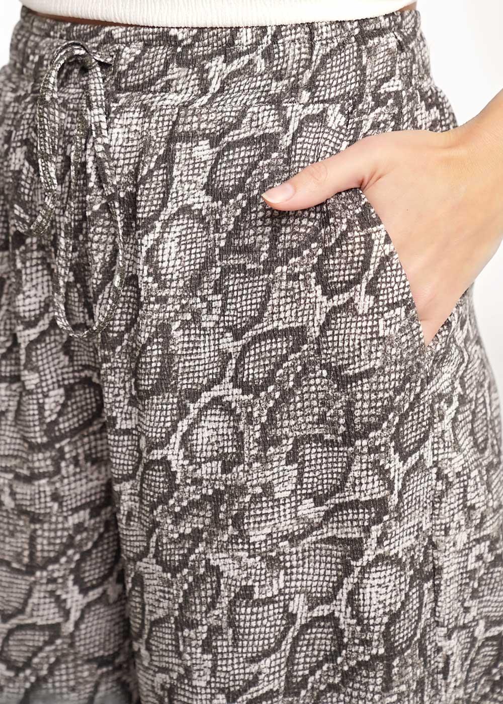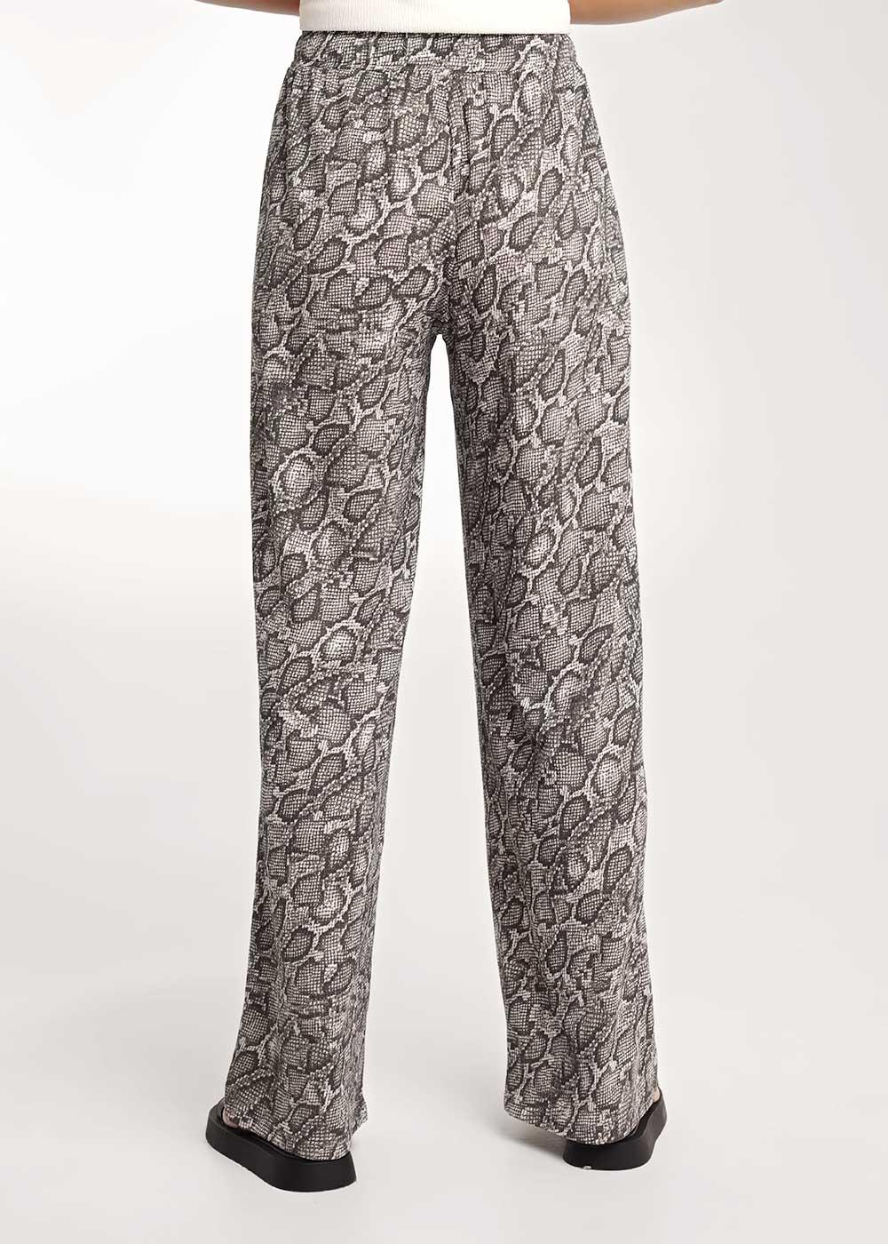 Брюки широкие из трикотажного полотна джерси фактурное. По талии притачной пояс на внутренней резинке со шнуром из основного полотна. Боковые карманы с отрезным бочком.