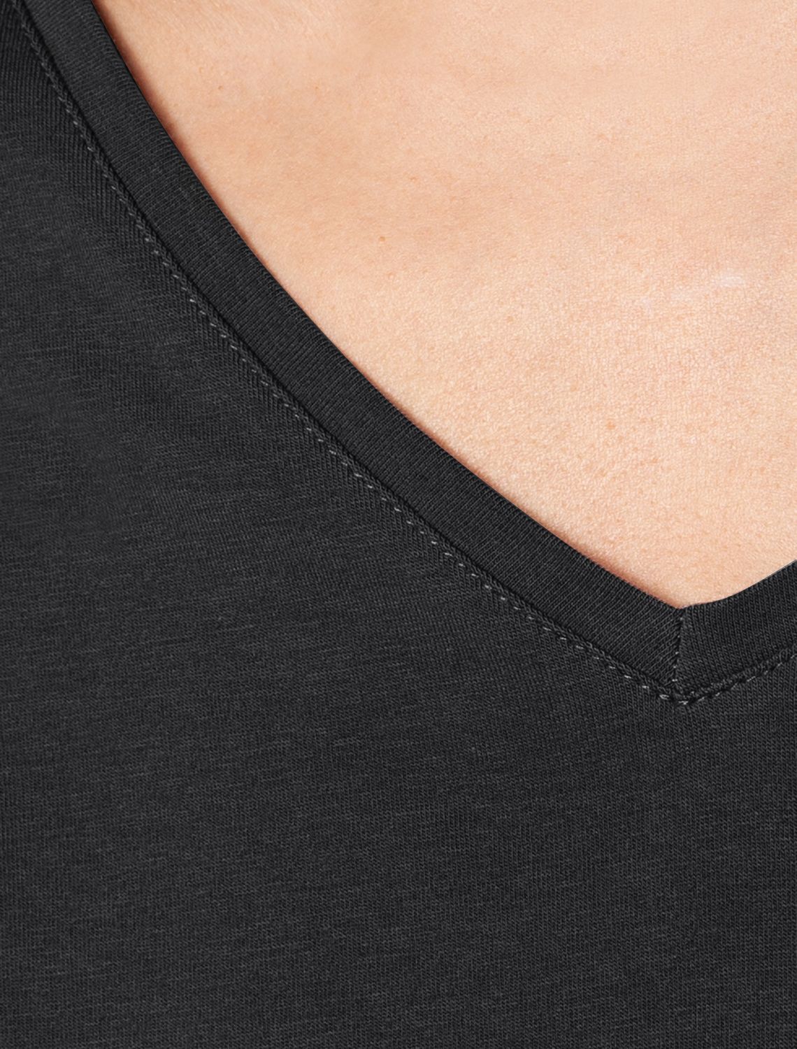 Футболка выполнена из эластичного премиального хлопка. V-вырез стройнит и вытягивает шею. Цельнокроеный рукав – красиво драпируется на плечах. На спинке изделия фирменный логотип бренда. Сочетай футболку с любимыми джинсами, брюками, юбками и шортами и создавай стильные аутфиты, в которых будет комфортно каждый день.