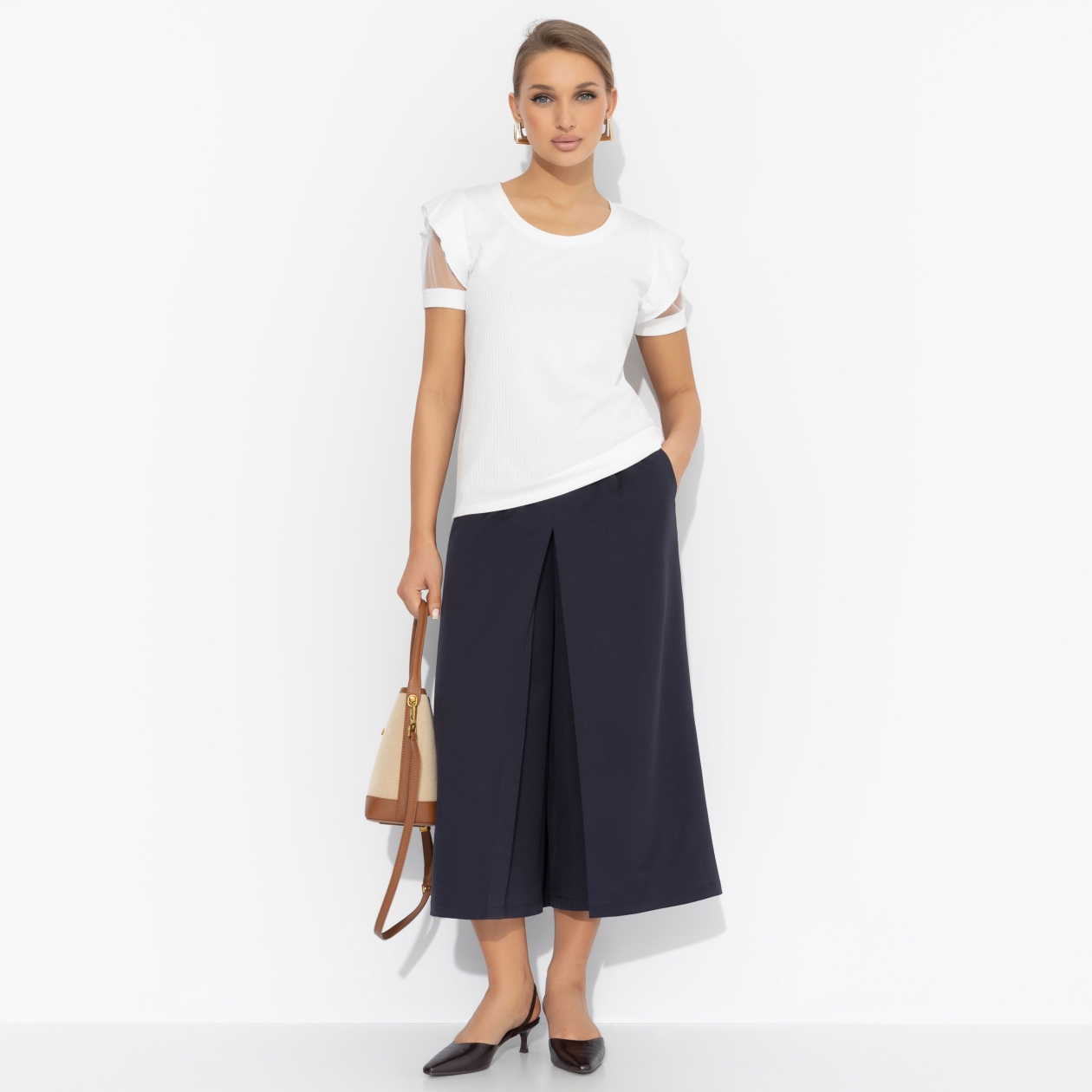 Вы с подругой встретились на праздничный завтрак с игристым, а обнаружили себя на посадке в самолет в Стамбул. Что было в промежутке – остается тайной. Но футболка ЧАРУТТИ стойко вынесла все приключения. Футболка приталенного силуэта. Рюши на плечиках изделия. Рукава дополнены тонкой сеткой. Изделие хорошо смотрится в заправленном виде и навыпуск. Материал изделия в рубчик.