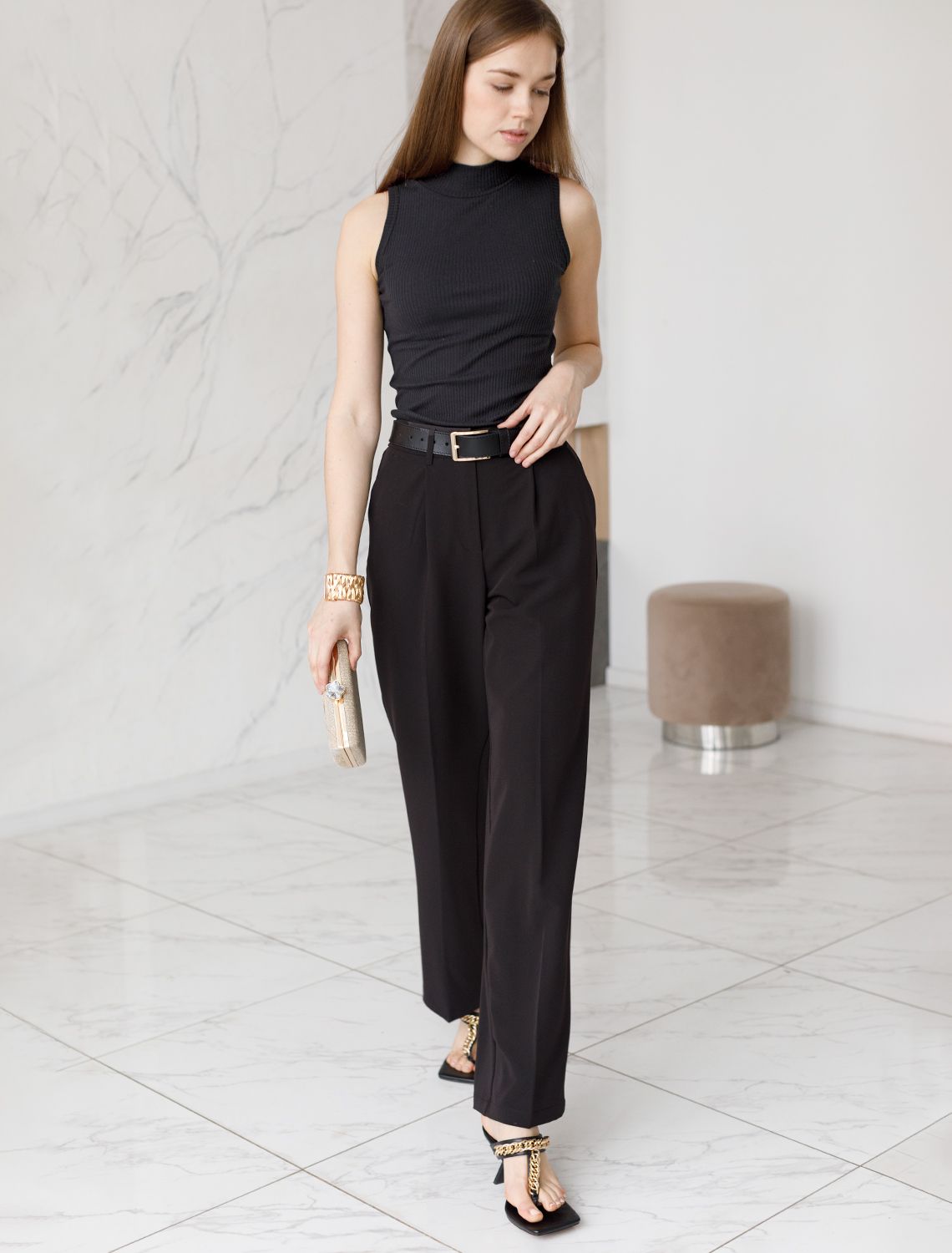 Ст.цена 1250р Топ из трикотажа в широкий рубчик D43.173 черный