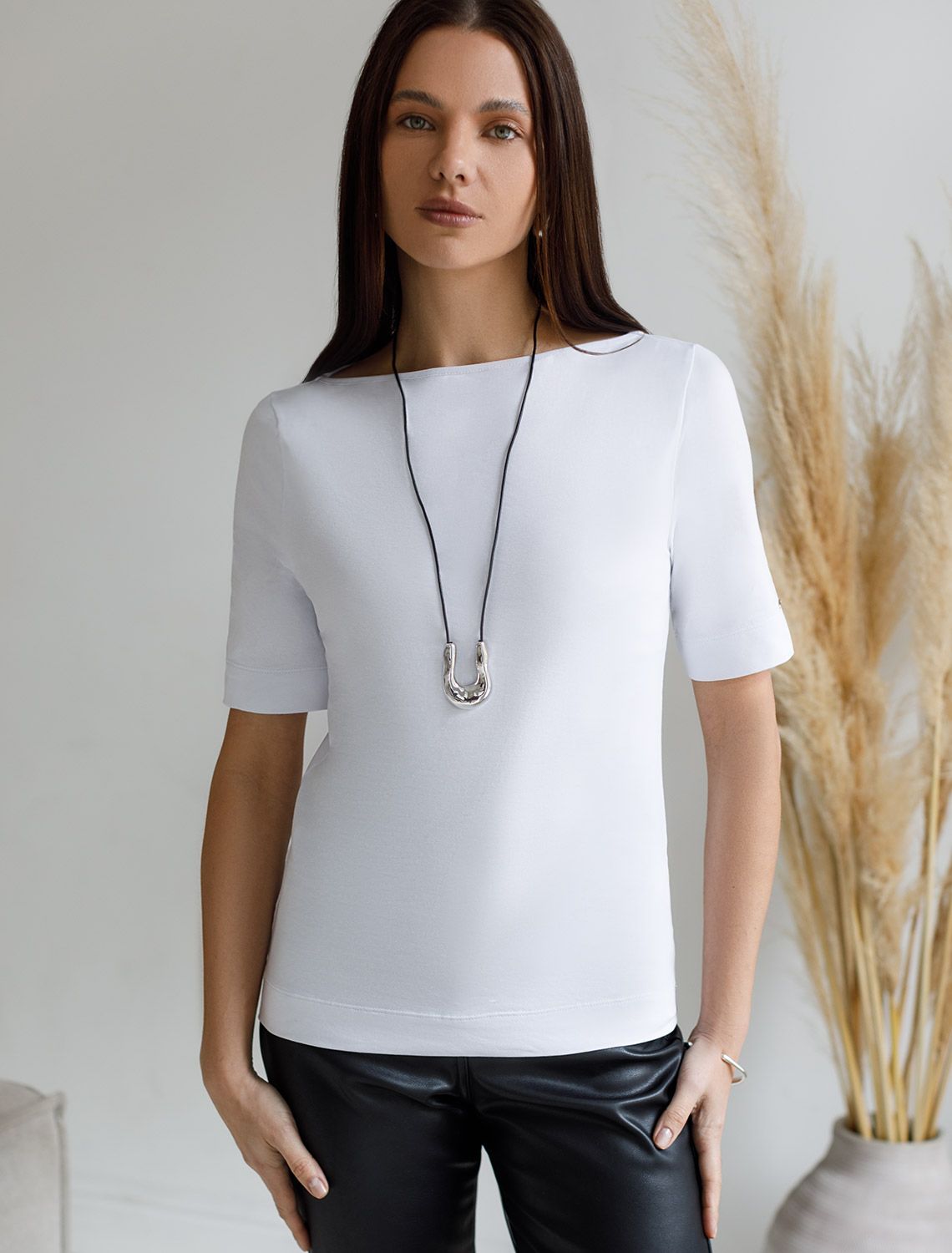 Футболка выполнена из премиального хлопка с добавлением эластана.Гладкий трикотаж обеспечит гарантированный комфорт и удобство в использовании. На рукаве металлическая нашивка с логотипом бренда. Издели будет хорошо сочетаться с любыми низами, жилетками и кардиганами, став выгодной инвестицией в базовый гардероб.