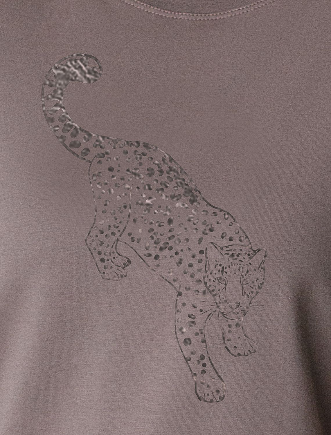 Стильная базовая футболка кофейного цвета с серебристым принтом фольгой выполнена из плотного хлопка с эластаном для комфортной посадки на любую фигуру. Прямая футболка классического кроя с круглым вырезом, прекрасно подходит для разных типов фигуры, в том числе и на большие размеры. Мягкость хлопка вместе с небольшой долей эластана гарантирует идеальную посадку и свободу движений. Легкая натуральная дышащая ткань премиального качества делает футболку с коротким рукавом идеальным вариантом для повседневной носки дома, на работу или офис. Однотонная футболка дополнена авторским аккуратным принтом с изображением леопарда, который придает праздничный и элегантный вид без лишней вычурности. Блестящий анималистичный принт аккуратно украшает, добавляя изысканный акцент и создавая легкий мерцающий эффект.