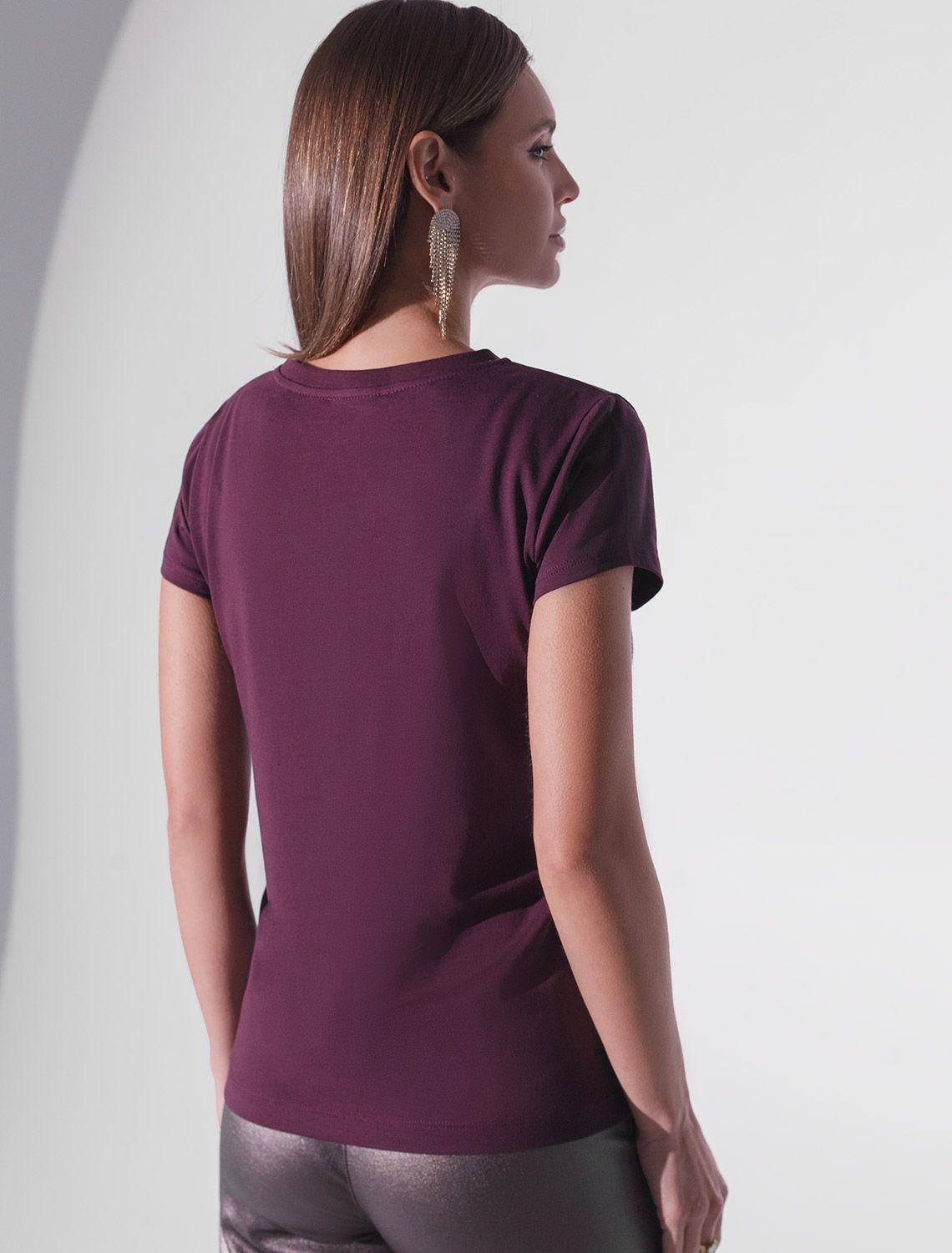 Футболка цвета бургунди идеально подходит для вечеринки и создания яркого образа. Оригинальный принт из устойчивых серебристых красок в виде надписи придает изделию шикарный вид, который привлечет внимание на любом мероприятии. Модель с круглым вырезом и классическим коротким рукавом обеспечивает свободу движений и комфорт в носке. Такой фасон изделия подходит на большие размеры, гармонично сидит на фигуре и помогает создать легкий акцент на достоинствах. Аккуратный круглый вырез красиво подчеркивает шею и делает образ элегантным, сохраняя актуальность для разных случаев — от рабочих встреч до вечерних прогулок и праздничных мероприятий.