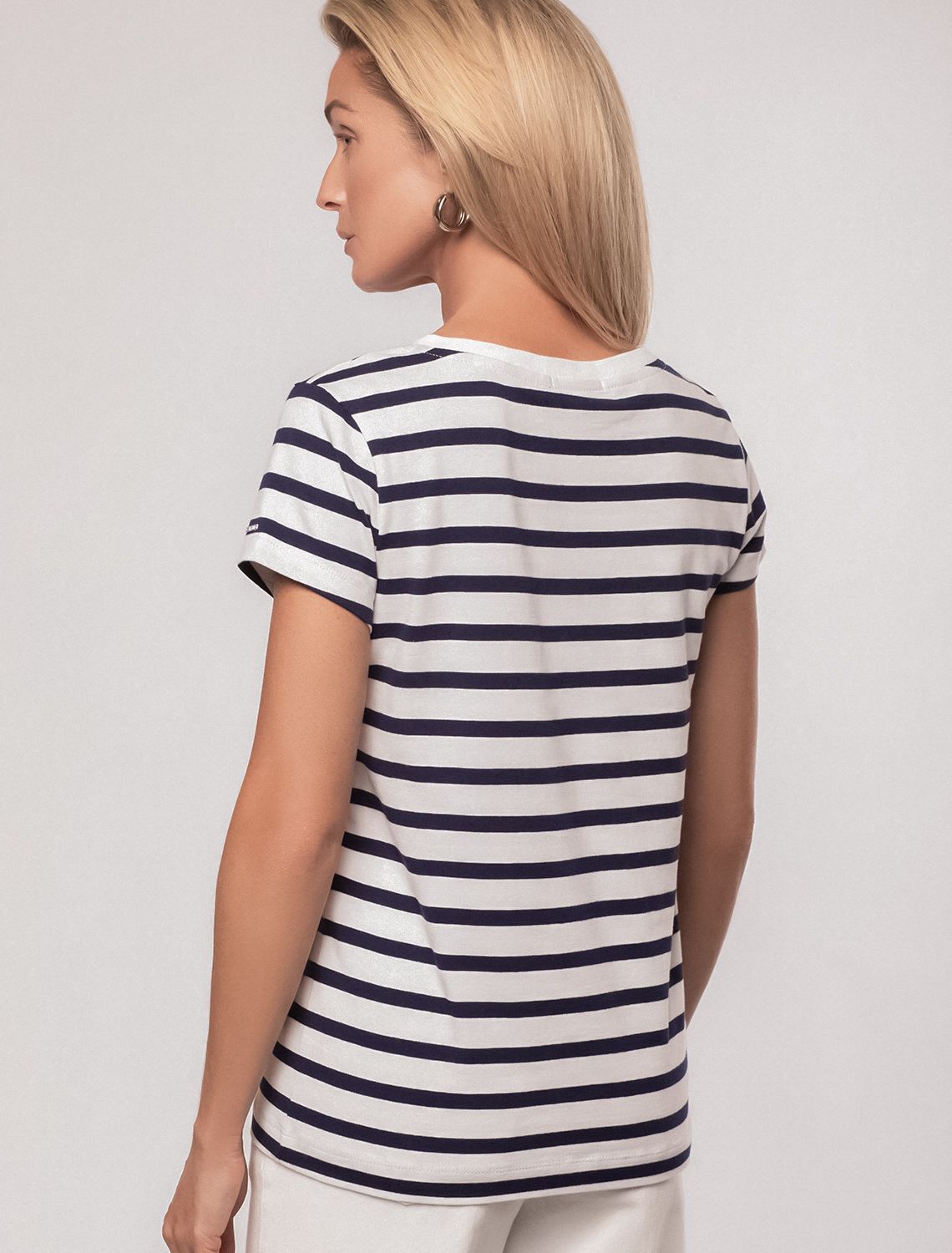 Ст.цена 1390р Футболка из премиального хлопка с эластаном D49.982 белый-т.синий полоса