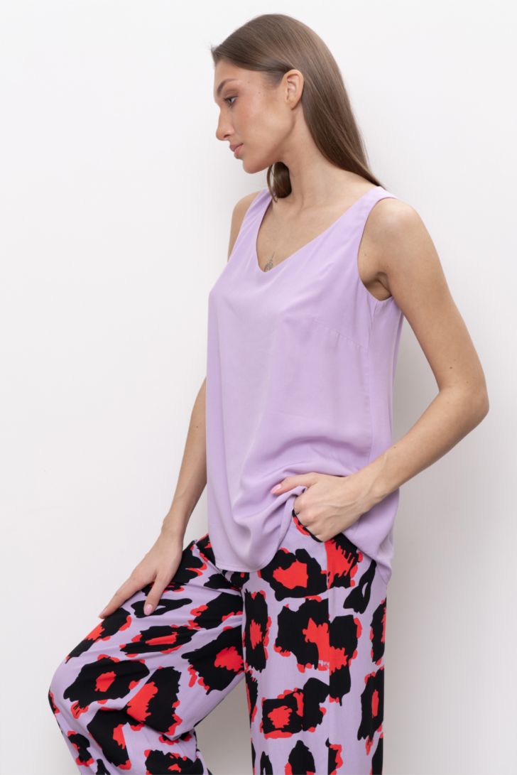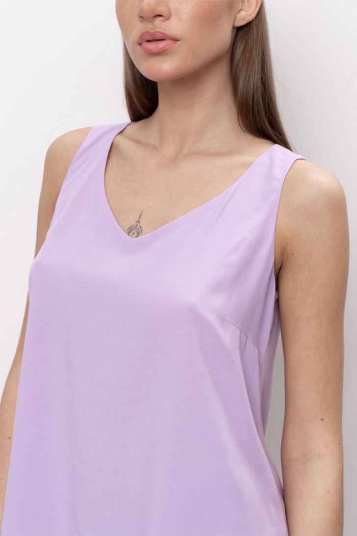 Топ на толстых бретелях идеально подчеркивает фигуру и создает ощущение легкости и свободы. Вырез топа V-образный, глубокий. Модель представлена в 3-х цветовых решениях.