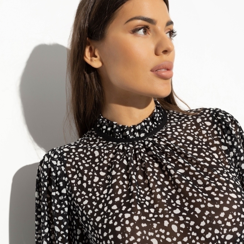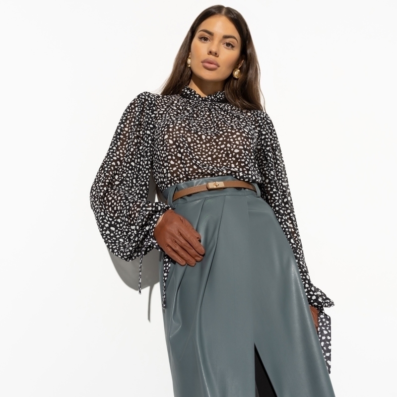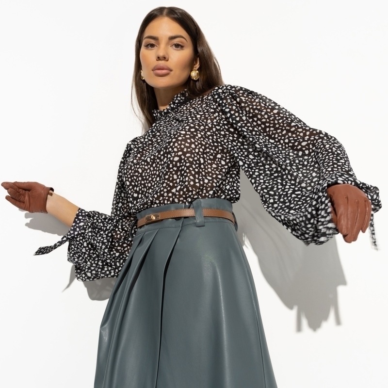 Наконец-то можно смело возразить маме, что прозрачная блуза – не твоя прихоть, а горячий модный тренд. Ты девушка молодая и амбициозная, так уж и быть, должна соответствовать. Тем более, что крой блузы максимально пуританский. Шик! Блуза свободного кроя. Объемный крой рукава. Блуза оформлена завязками на рукавах и на вороте сзади. Хорошо смотрится в заправленном виде и навыпуск.