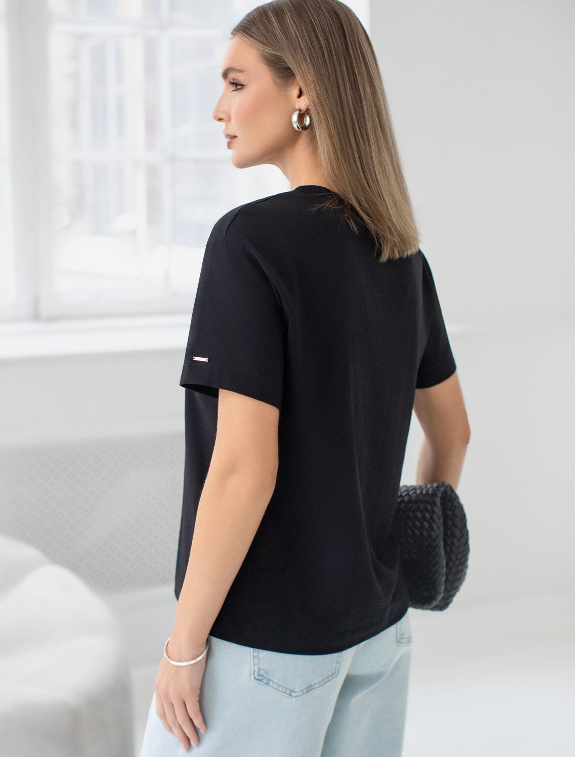 Эта эффектная футболка станет отличным выбором на праздник, подчеркивая образ сияющей и уверенной в себе девушки или женщины. Если вы ищете комфортный и одновременно привлекательный наряд для особых моментов, эта футболка станет надежным решением, подчеркивающим вашу индивидуальность и вкус.