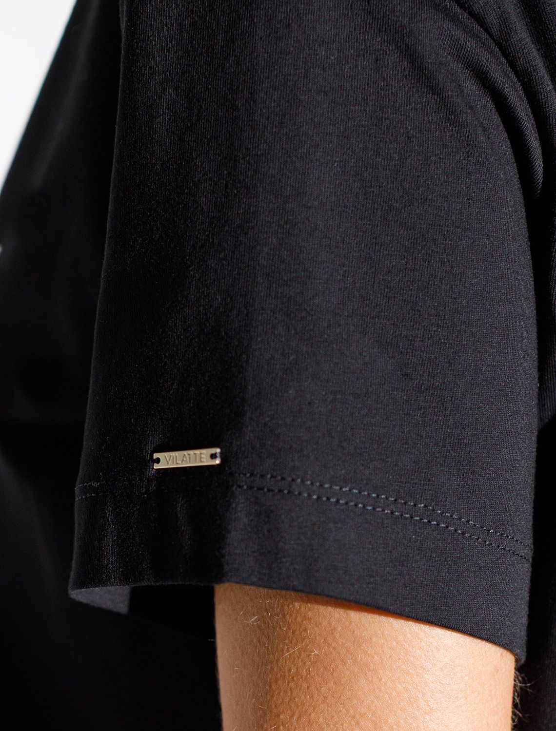 Стильная базовая футболка черного цвета с принтом пайетками в виде рыбки выполнена из плотного хлопка с эластаном для комфортной посадки на любую фигуру. Прямая футболка классического кроя с круглым вырезом, прекрасно подходит для разных типов фигуры, в том числе и на большие размеры. Мягкость хлопка вместе с небольшой долей эластана гарантирует идеальную посадку и свободу движений. Легкая натуральная дышащая ткань премиального качества делает футболку с коротким рукавом идеальным вариантом для повседневной носки дома, на работу или офис. Однотонная футболка дополнена авторским аккуратным принтом, который придает праздничный и элегантный вид без лишней вычурности. Блестящий анималистичный принт аккуратно украшает, добавляя изысканный акцент и создавая легкий мерцающий эффект.
