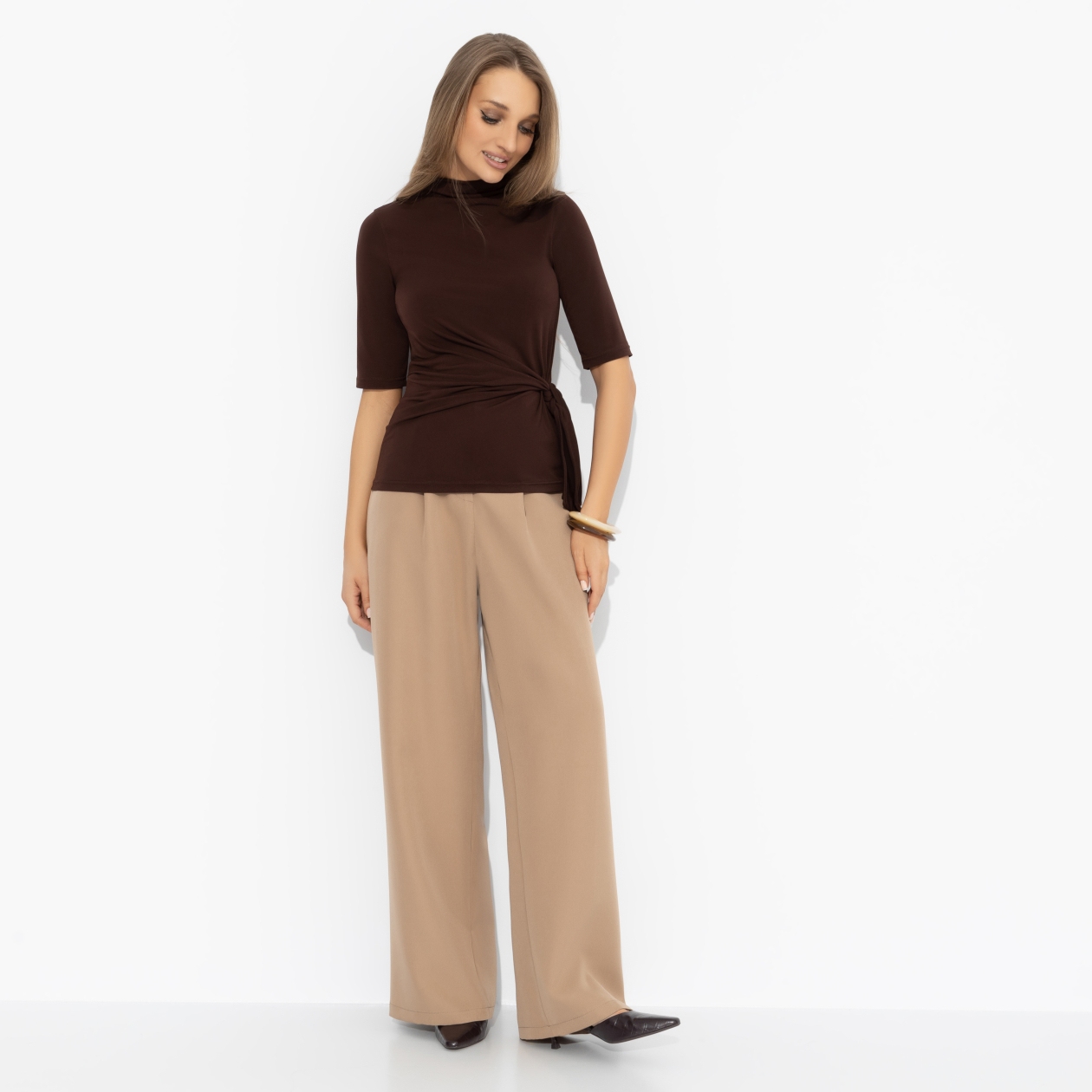 Растаять, как кусочек горького бельгийского шоколада, от его комплиментов. Такой план на вечер. В блузе ЧАРУТТИ цвета какао ты сможешь не только выполнить план, но и взять выше – получить двойной объем комплиментов. Блуза из эластичной ткани с декоративными сборками. Посадка по фигуре. Длина рукава до середины руки. ВНИМАНИЕ! Изделие может краситься. Рекомендуем постирать перед первой ноской.