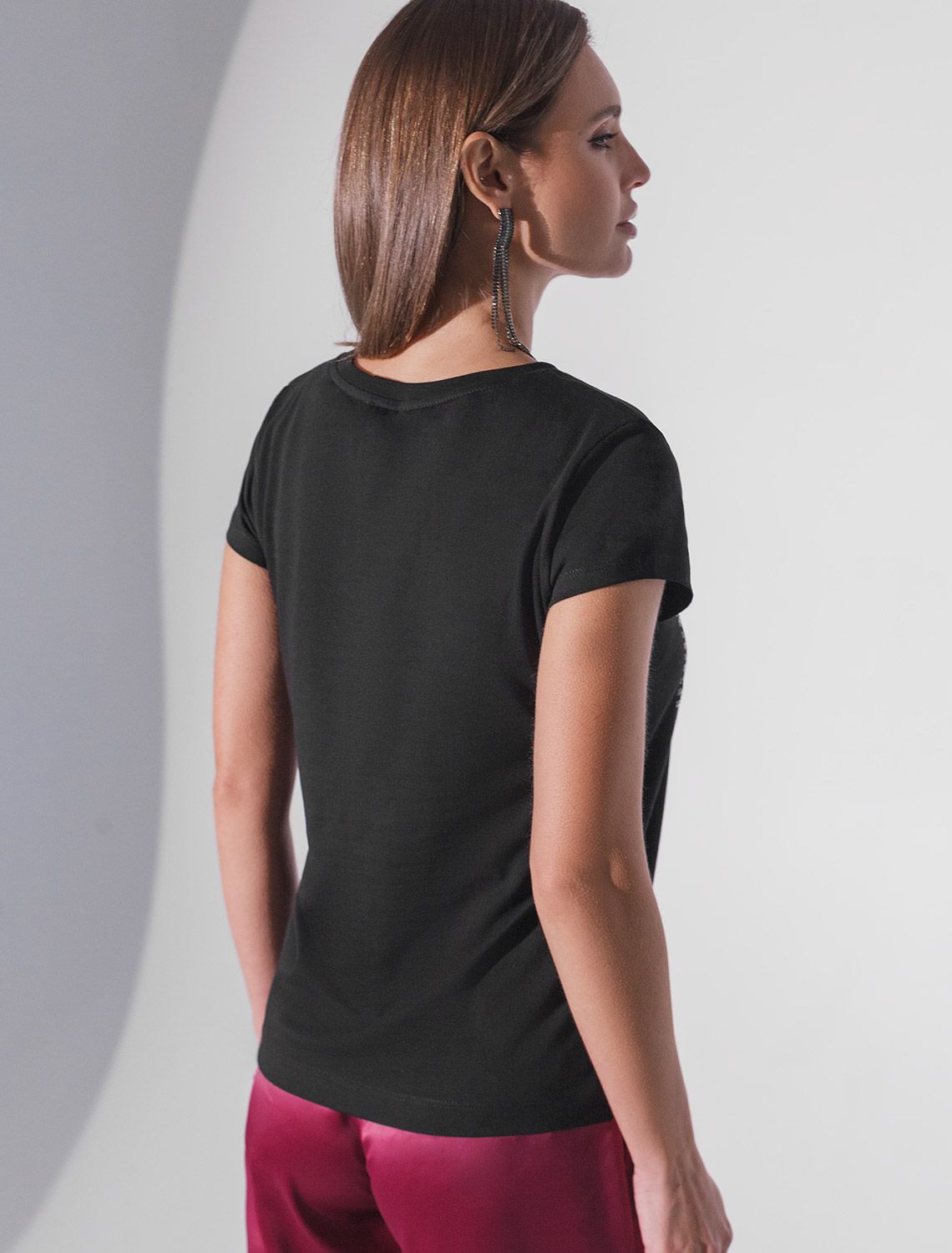 Эта нарядная футболка подходит для создания образа на каждый день и идеально подойдет на выход. Модель не мнется, что делает ее практичным вариантом для активных женщин, которые ценят стиль и удобство.