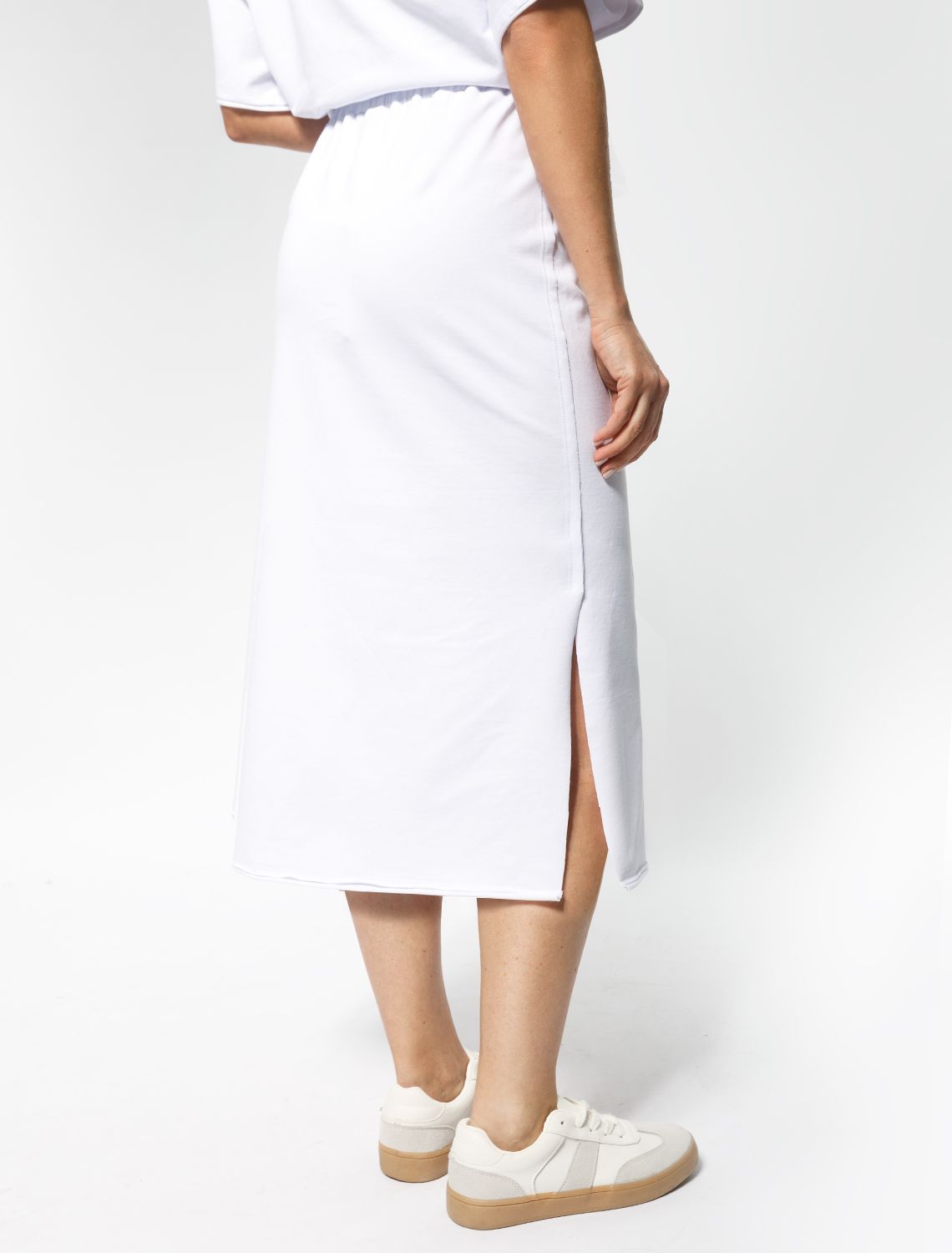 Ст.цена 1690р Юбка из тончайшего футера на резинке и отделкой с открытыми срезами D46.036 белый