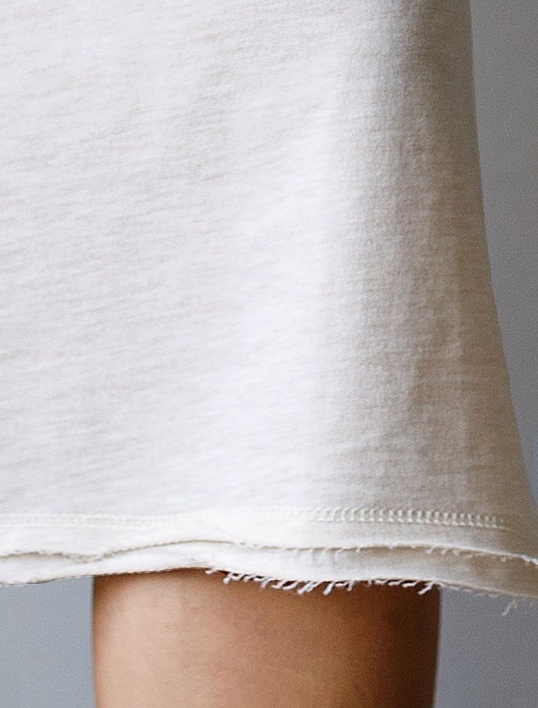 Юбка выполнена из тончайшего футера. Пояс на резинке с регулируемым хлопковым шнуром и золотистой фурнитурой. Модель прямого кроя дополнена разрезами по бокам и трендовой отделкой с открытыми срезами. Наличие эластана в составе изделия способствует формоустойчивости. Металлический логотип бренда.