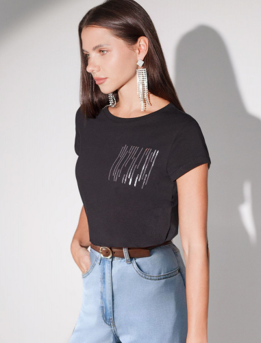 Эта эффектная футболка станет отличным выбором на праздник, подчеркивая образ сияющей и уверенной в себе девушки или женщины. Если вы ищете комфортный и одновременно привлекательный наряд для особых моментов, эта футболка станет надежным решением, подчеркивающим вашу индивидуальность и вкус.