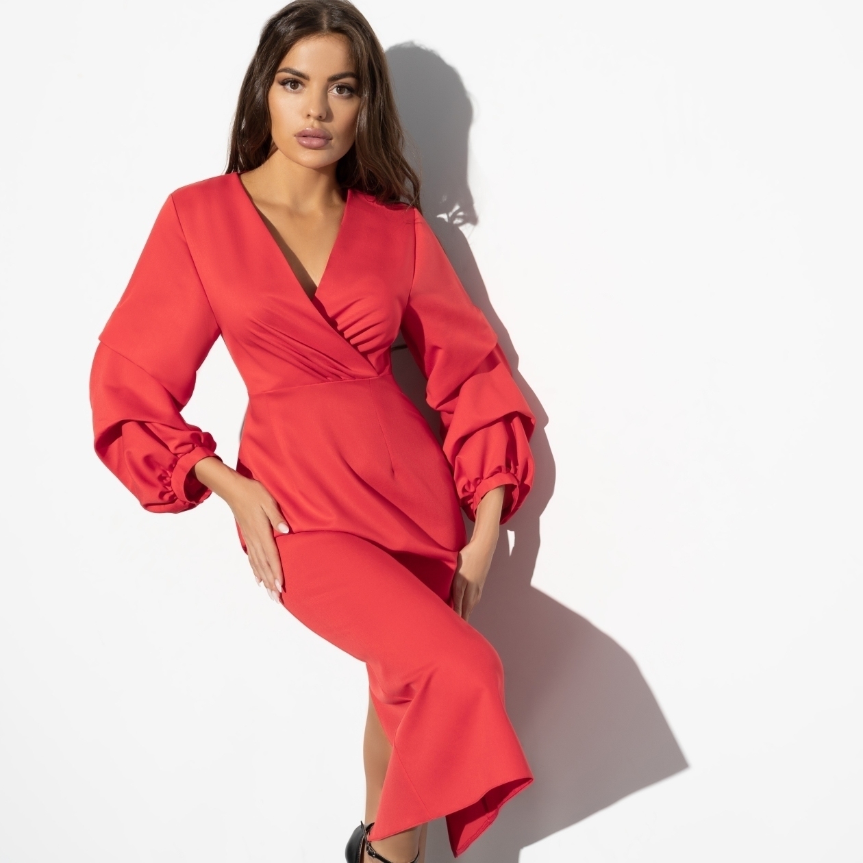 Платье с объемными рукавами «Роковое искушение» от CHARUTTI – это воплощение элегантности и чувственной страсти. Представьте себе текстуру креп-сатина, которая нежно огибает каждую линию тела, идеально подчеркивая фигуру и придавая образу очаровательную легкость. Насыщенный красный цвет – это прежде всего символ энергии, уверенности и власти, который оставит неизгладимое впечатление на окружающих. Оптовая покупка этого роскошного платья гарантирует вам грандиозное появление на любом мероприятии, где вы сможете задавать тон и вдохновлять других своей дерзкой красотой и стилем.
