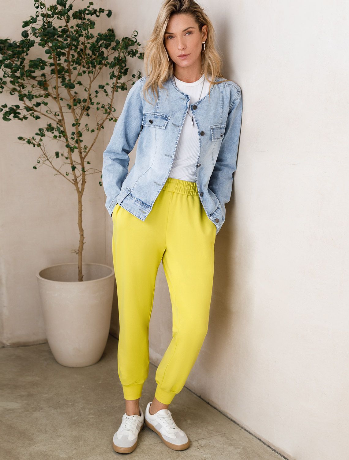Ст.цена 1850р Брюки из тонкого футера с эластаном D44.040 горчично-лаймовый