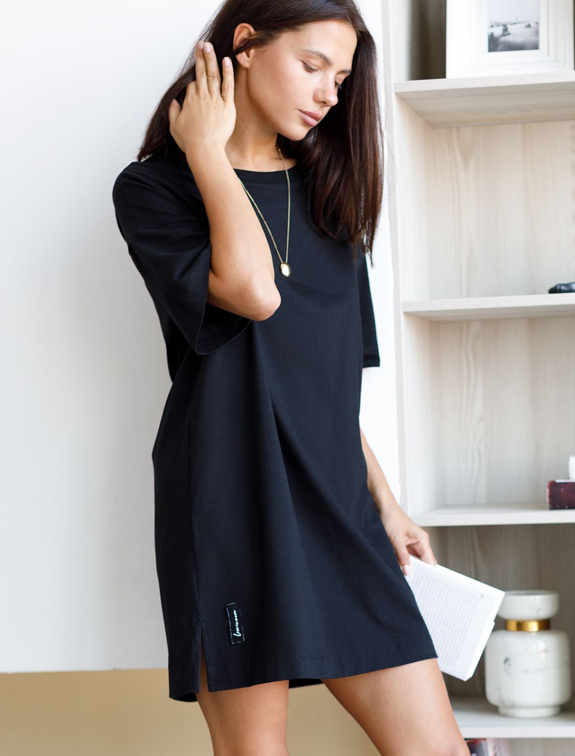 Платье-футболка выполнено из премиального хлопка. Наличие эластана в составе изделия способствует формоустойчивости и меньшей сминаемости. Свободный крой подходит для любой фигуры. Изделие украсили нашивкой снизу и металлическим логотипом бренда. 2 в 1 можно носить как платье или как удлиненную футболку с леггинсами или джинсами.