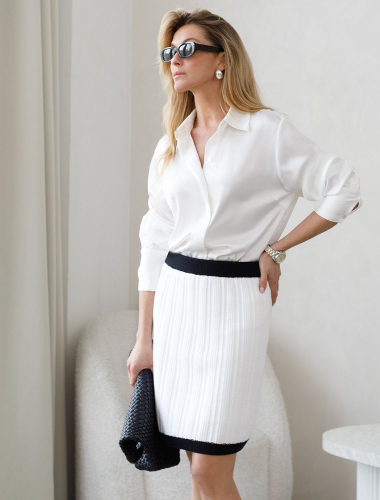 Ст.цена 1890р Юбка фактурной вязки с трикотажной подкладкой D36.014 нат.белый_черный