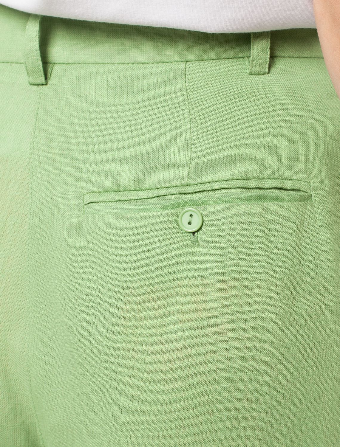 Шорты-бермуды в фисташковом цвете. Модель дополнена двумя боковыми карманами и одним задним карманом в рамку. В основе только натуральный лён с добавлением вискозы: дышащий и гипоаллергенный. Ткань прочная и приятая на ощупь, хорошо держит форму. Сочетайте в костюме с блузкой-топом D23.101 и удлиненной блузкой D29.776