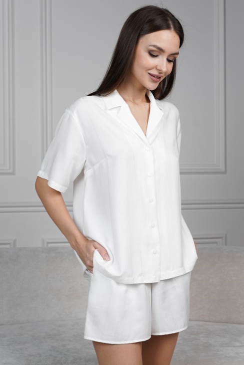 Необычайно стильный и элегантный женский жакет на пуговицах с коротким рукавом. По спинке модели кокетка со сборками.