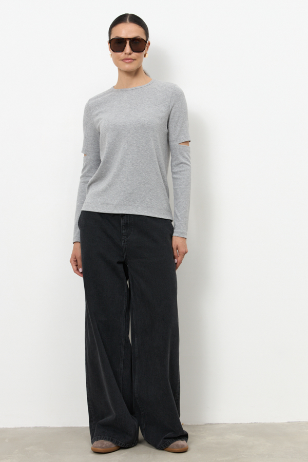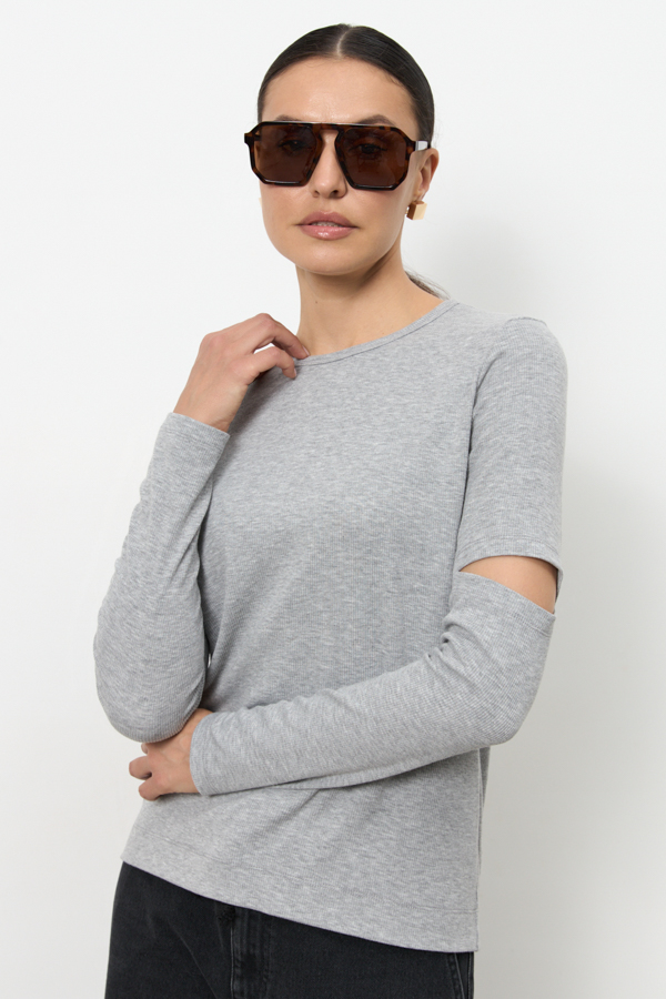 Джемпер из эластичного полотна в мелкий рубчик прилегающего силуэта. Втачной длинный рукав оригинального кроя. Круглый вырез горловины окантован бейкой. Женский джемпер стал незаменимой и популярной разновидностью одежды, которая может применяться буквально во всех случаях жизни.
