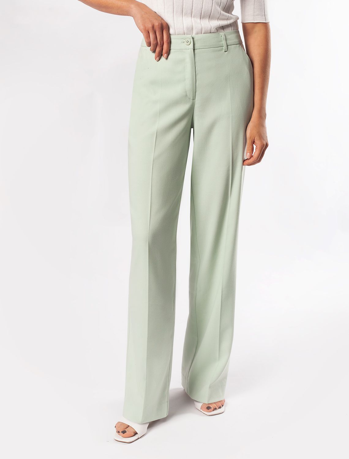 Ст.цена 2390р Прямые брюки из летней эластичной поливискозы с фактурой D24.508 светло-оливковый